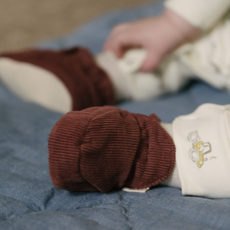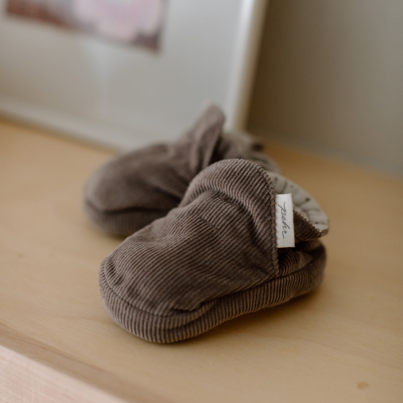 A cozy essential with a timeless touch. Our Corduroy Booties are crafted from 100% organic cotton with a durable canvas sole, designed for comfort, style, and ease. Lightweight and lined with softness, the elastic pull-on opening keeps them snug on little feet. Pehr with our Littles Kimono One Piece and Essentials Leggings for a cozy, coordinated look.