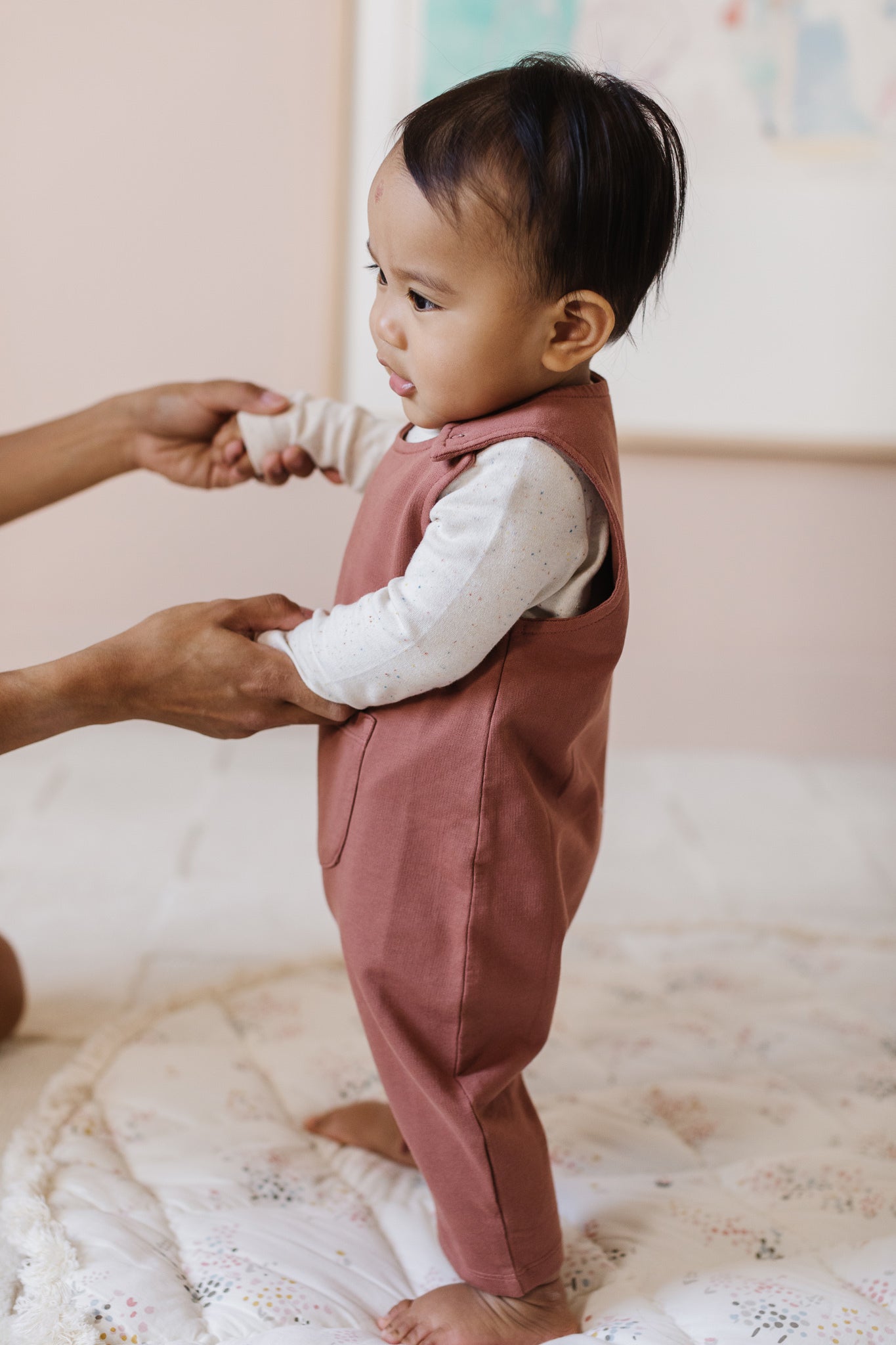 Made for movement, play, and everyday. Our French Terry Overalls are crafted from 100% organic French Terry cotton for a soft, plush feel that’s gentle on baby’s skin. Each piece is garment dyed for a one-of-a-kind, vintage-washed look and features a relaxed fit for all-day comfort. With adjustable shoulder snaps, leg snaps for easy changes, and a roomy front pocket for tiny treasures, they’re made for mixing, matching, and making memories. Pehr with our Garment Dye Long Sleeve and Recess Sneakers for a head to toe look.
