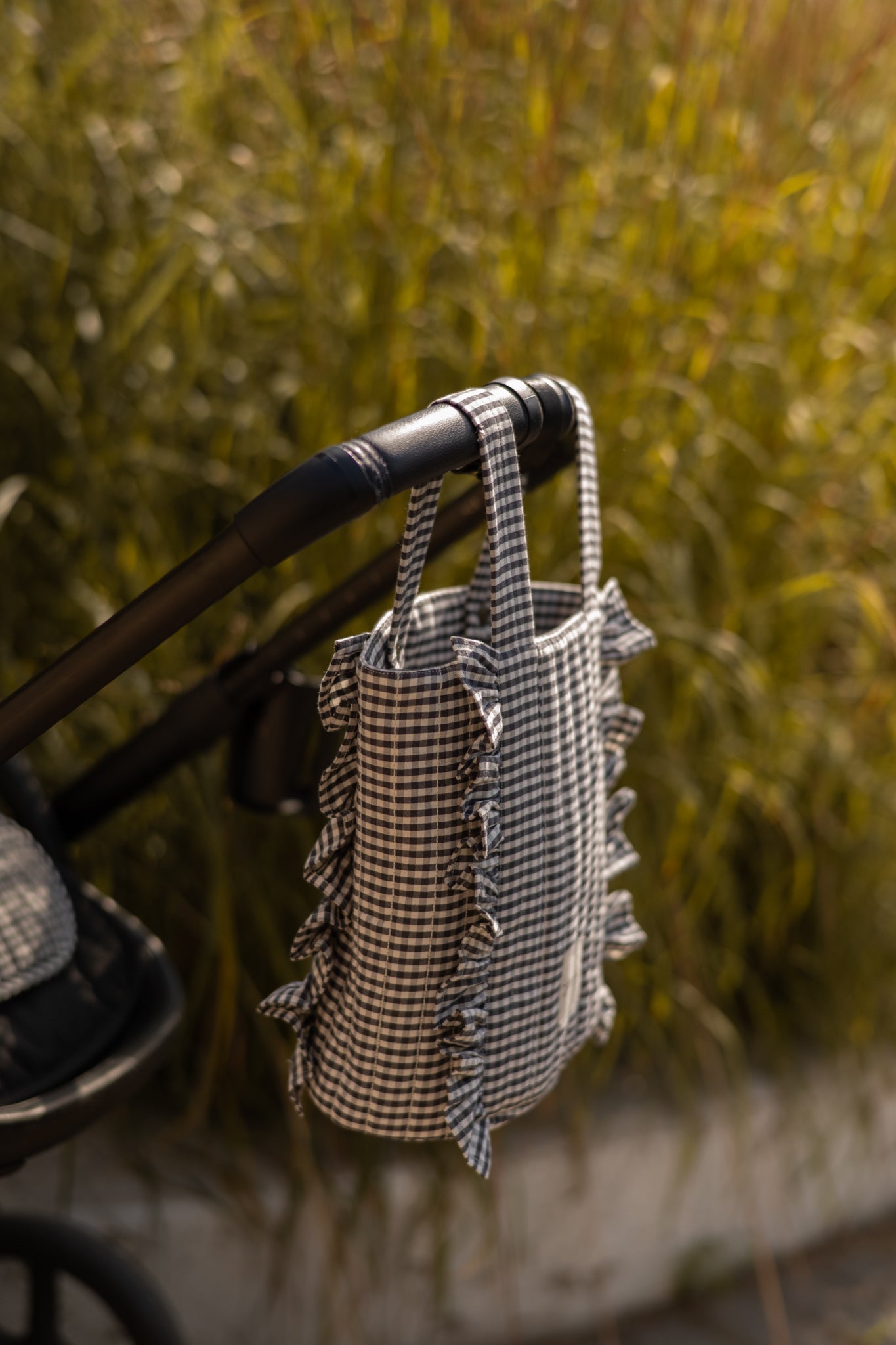 Your new go-to stroller companion! Crafted in 100% organic cotton with quilted channel stitching, our Stroller Bag Set is designed to be both stylish and functional. It attaches easily to most stroller bars with snap-closure straps and features a roomy interior with a secure drawstring top to keep essentials in place. Inside, a large elastic pocket helps organize diapers, bottles, or wipes, while the included matching mini zip pouch keeps smaller items within reach. With top handle straps for easy grab-and-go, it seamlessly transitions from stroller to hand when you’re on the move.