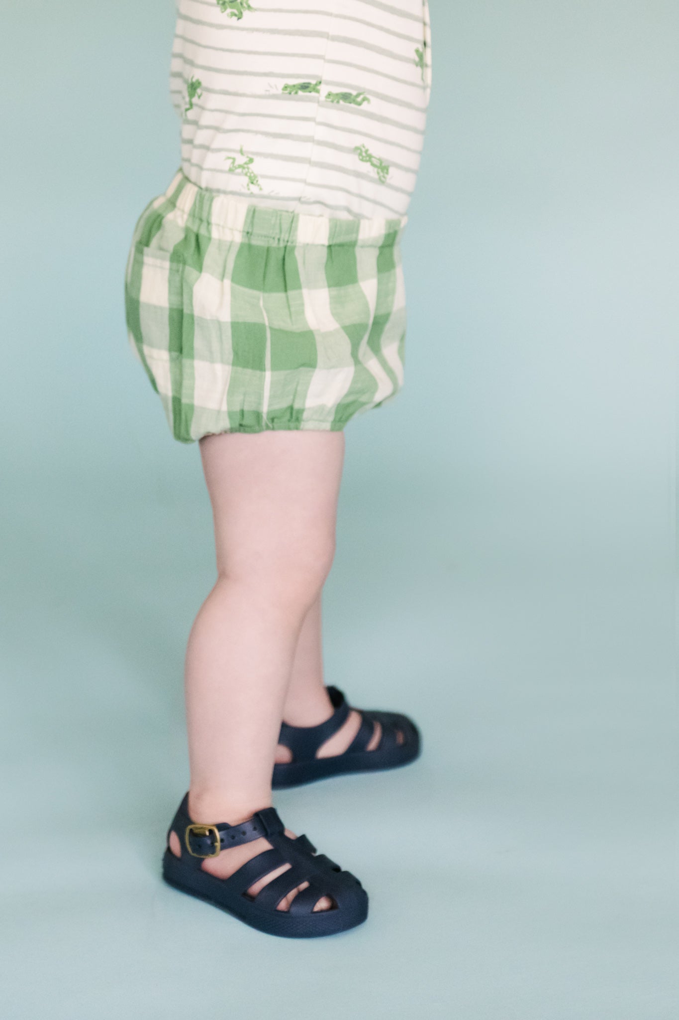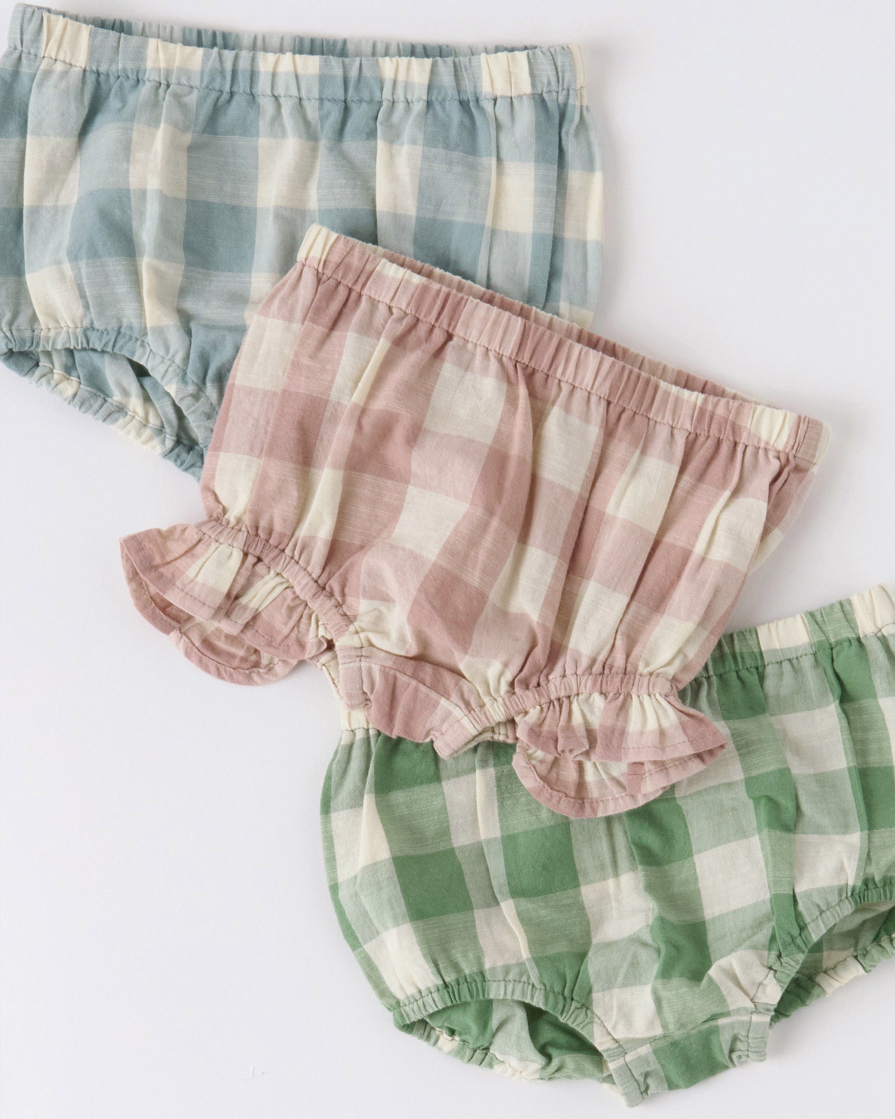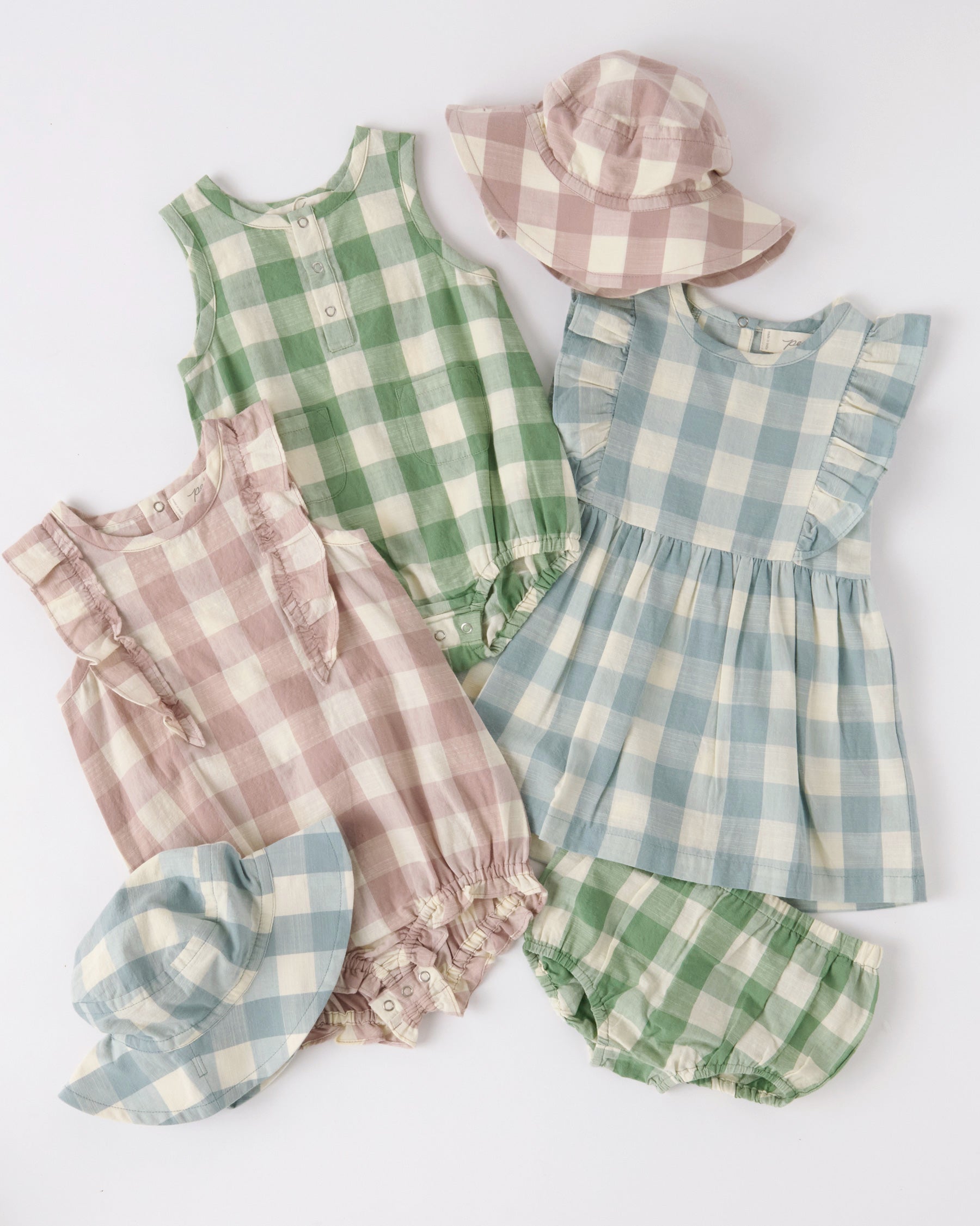 Playful, classic, and perfect for every sunny day. Our Checkmate Bloomer is a warm-weather staple. Crafted from GOTS-certified 100% organic cotton, they feature an all-over check print, elastic waist and legs, and a billowy silhouette that’s as comfy as it is cute. Designed to Pehr with matching One-Pieces, Bucket Hat, or Dresses, they make the sweetest lightweight bottom for little ones.