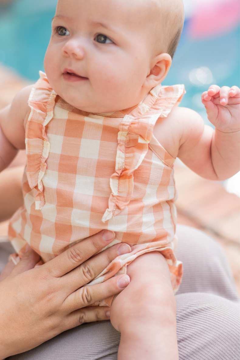A charming organic cotton baby romper designed for warm-weather comfort, thoughtful details, and everyday ease.