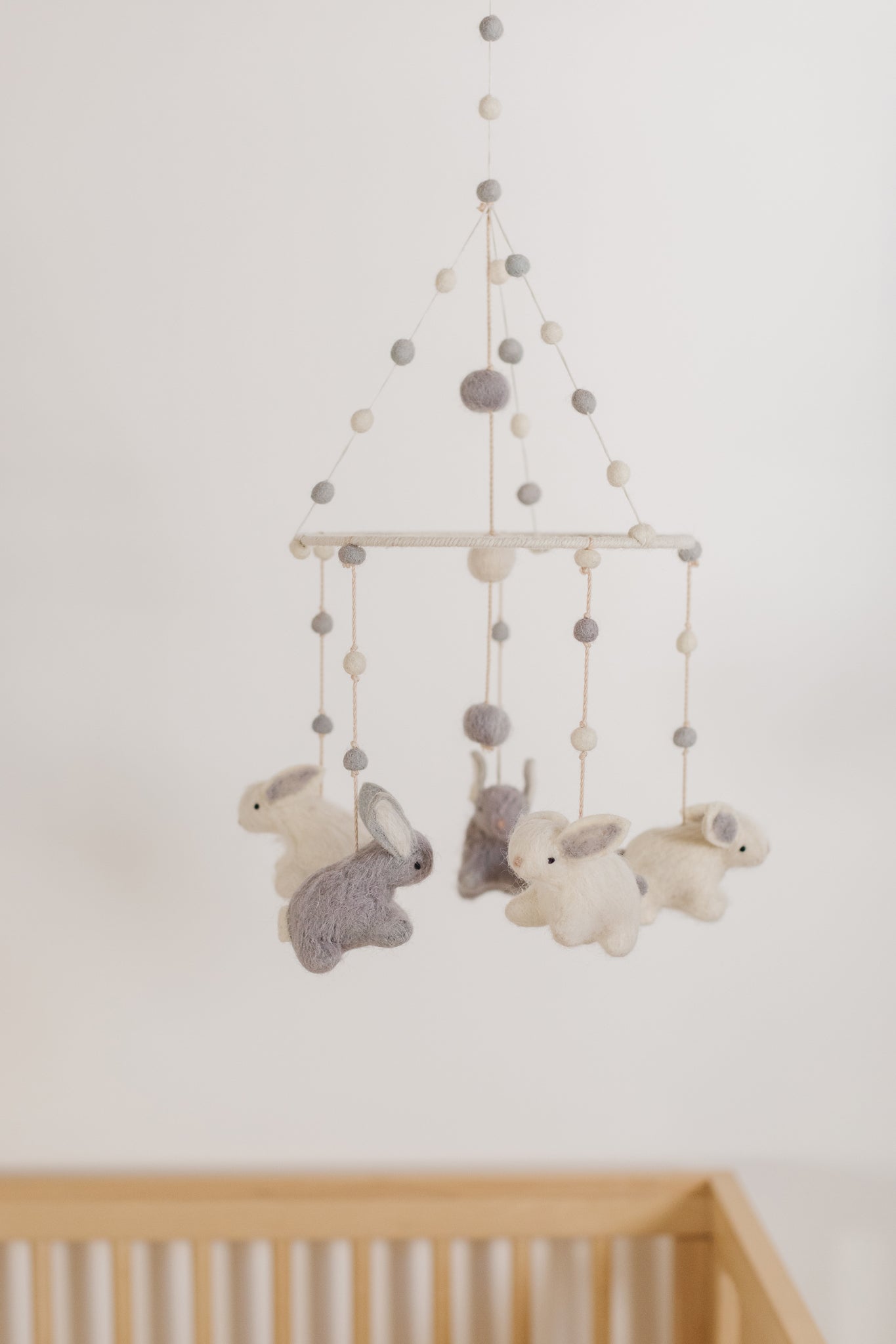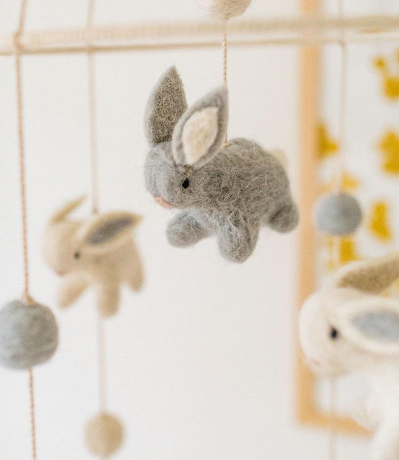 Each mobile is meticulously crafted from 100% wool and colored with gentle, AZO-free dyes for a natural, baby-safe finish.