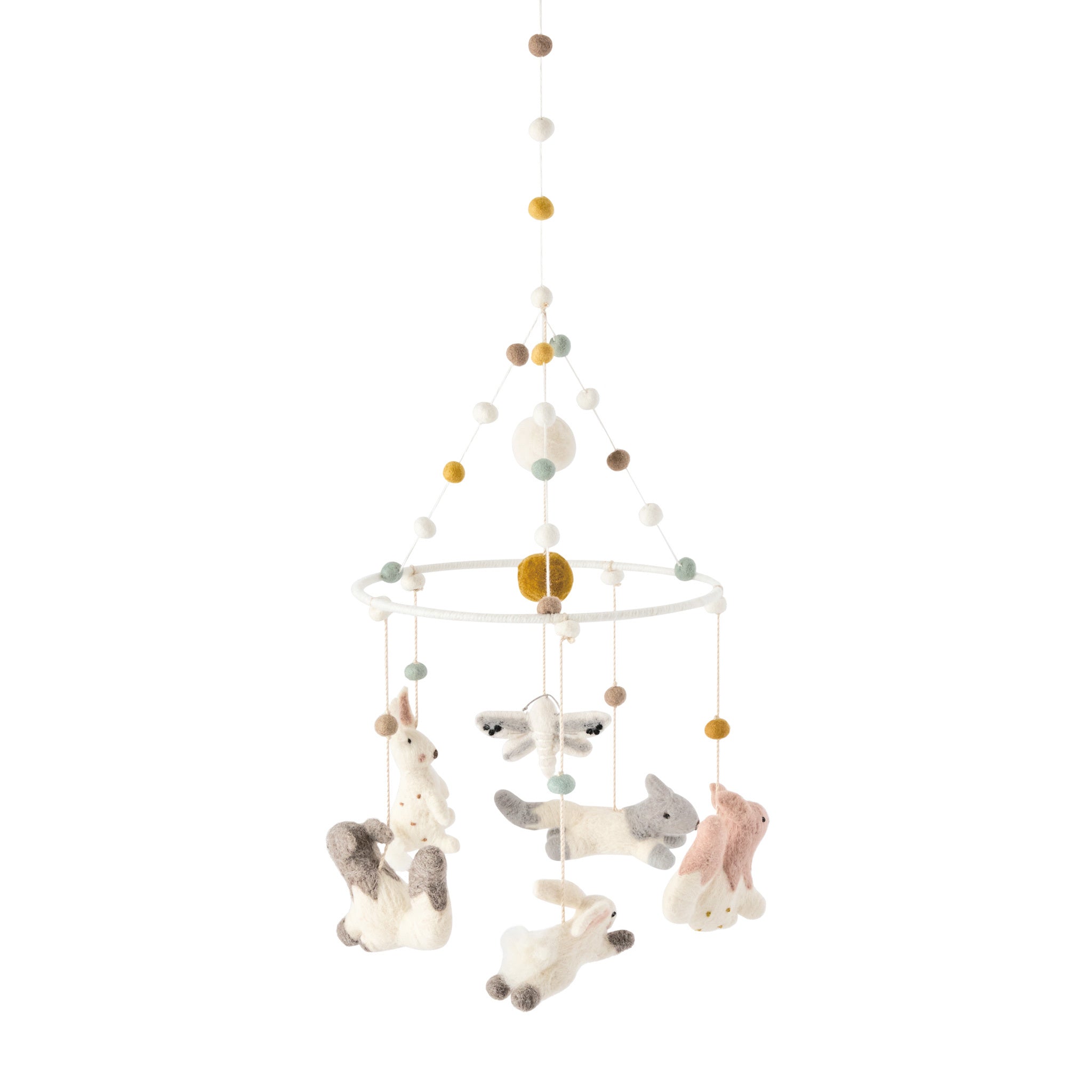 Each mobile is meticulously crafted from 100% wool and colored with gentle, AZO-free dyes for a natural, baby-safe finish.