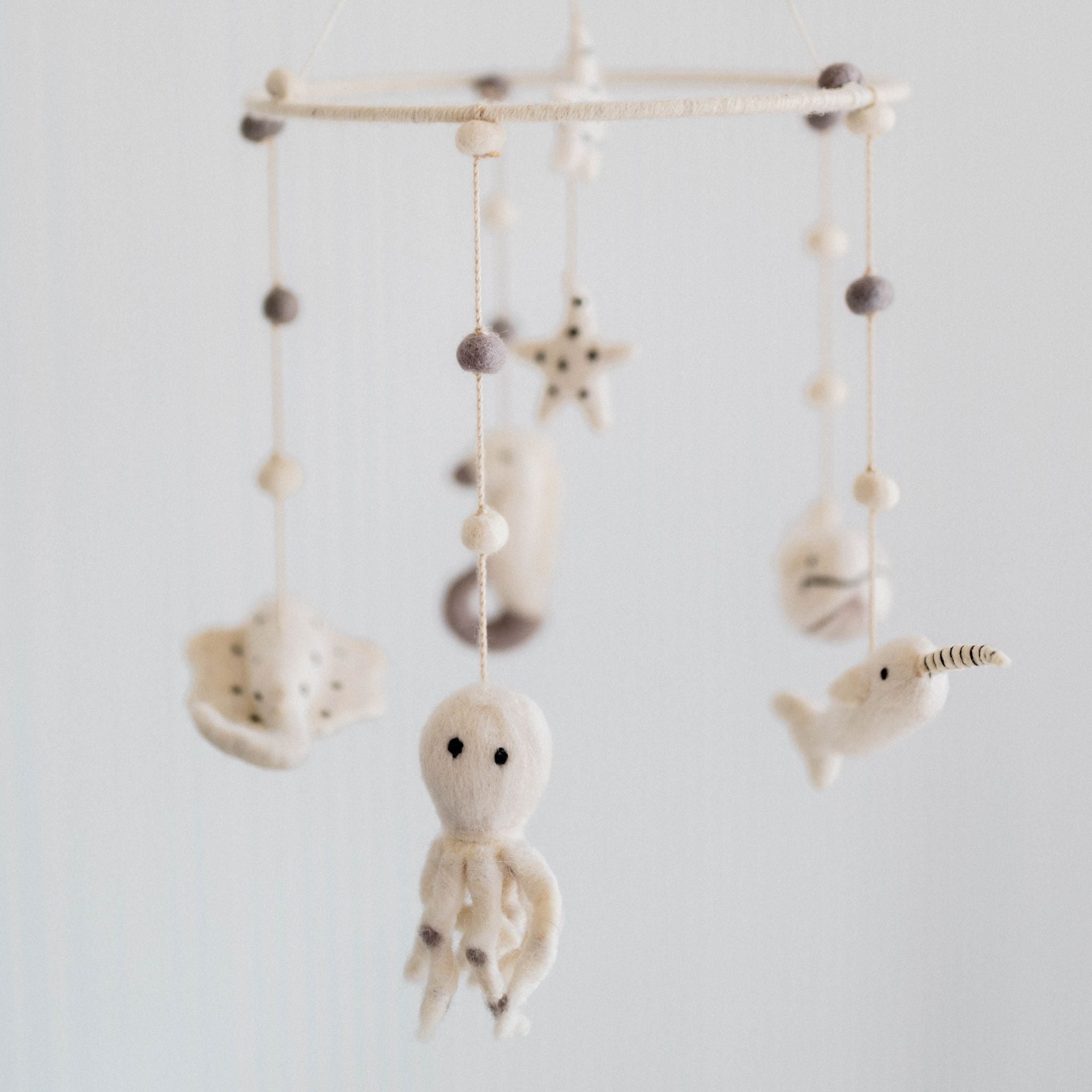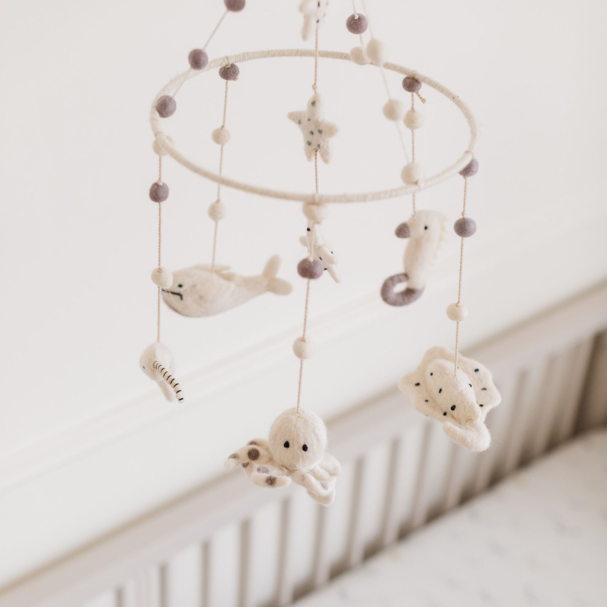 Each mobile is meticulously crafted from 100% wool and colored with gentle, AZO-free dyes for a natural, baby-safe finish.