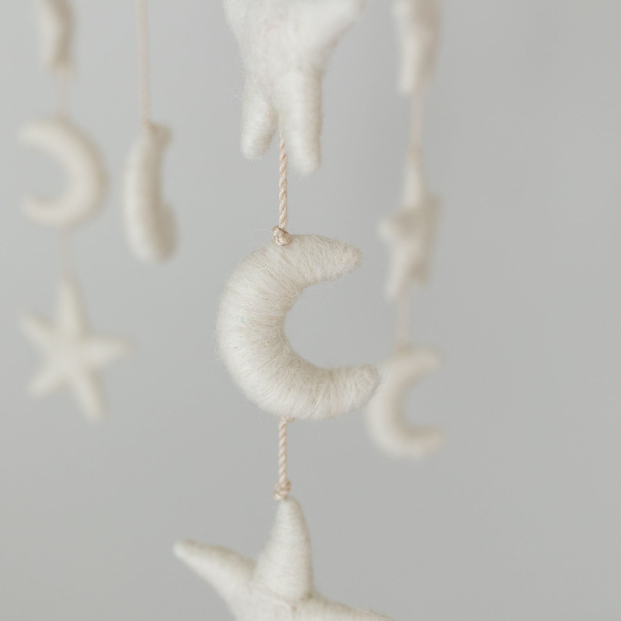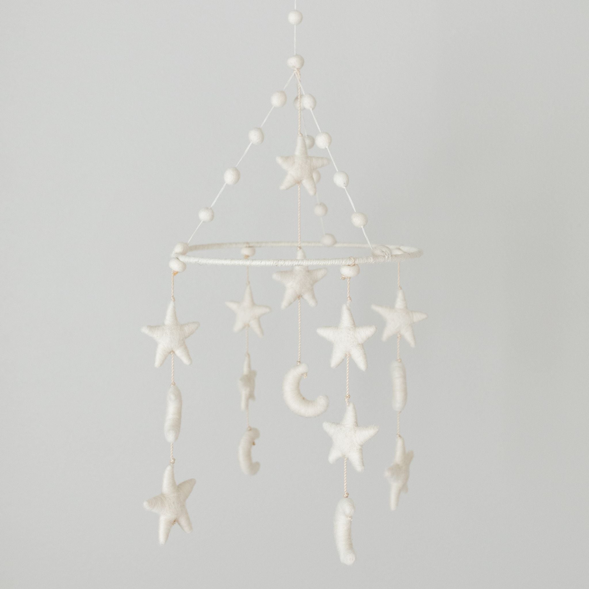 Each mobile is meticulously crafted from 100% wool and colored with gentle, AZO-free dyes for a natural, baby-safe finish.