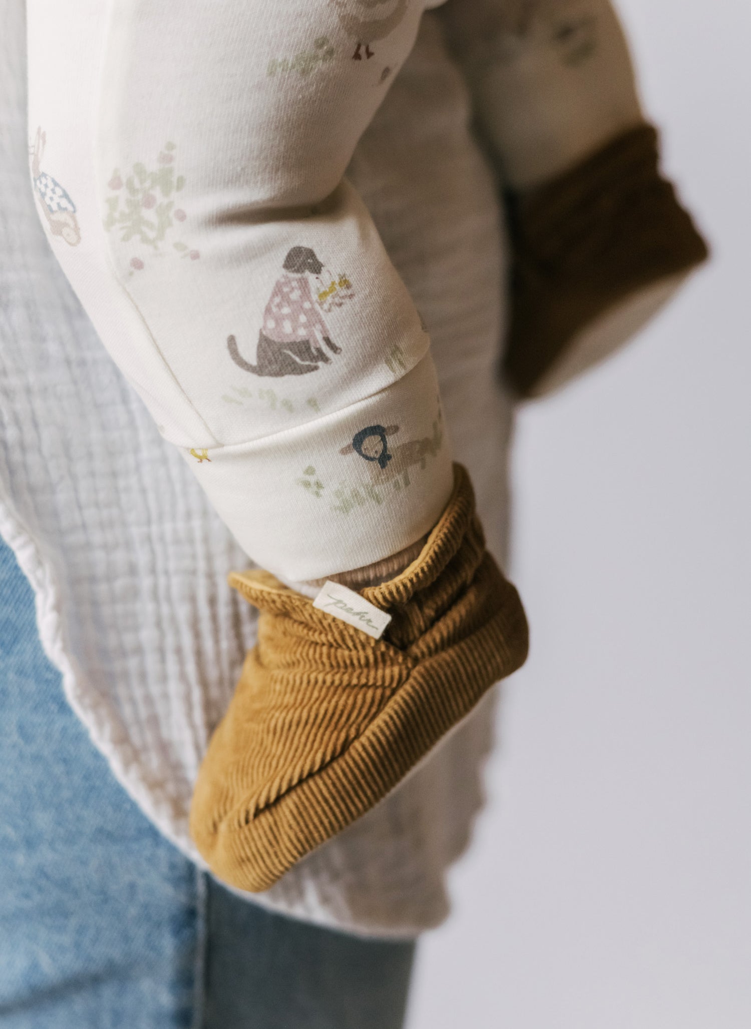 A cozy essential with a timeless touch. Our Corduroy Booties are crafted from 100% organic cotton with a durable canvas sole, designed for comfort, style, and ease. Lightweight and lined with softness, the elastic pull-on opening keeps them snug on little feet. Pehr with our Littles Kimono One Piece and Essentials Leggings for a cozy, coordinated look.