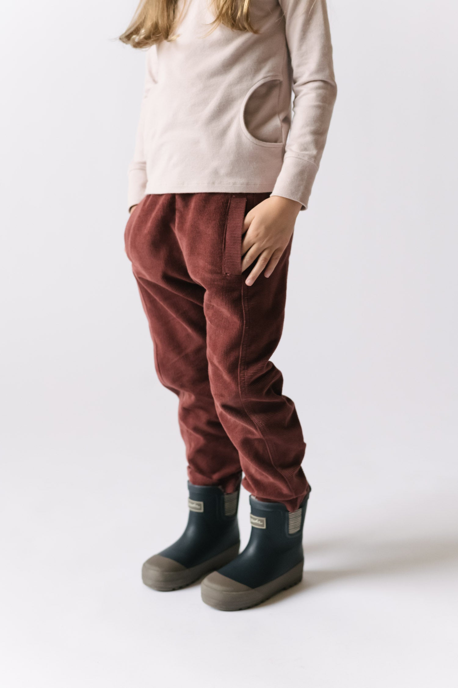 A timeless essential made for movement. Our Corduroy Pants are crafted from 100% GOTS certified organic cotton in a soft, textured corduroy that’s gentle on sensitive skin. With an easy pull-on elastic waistband, cuffable hems, and both side and back welt pockets, these pants are designed for everyday play and all-day comfort. These pants are perfect for mixing and matching with our Gingham Long Sleeve One-Piece or Top.