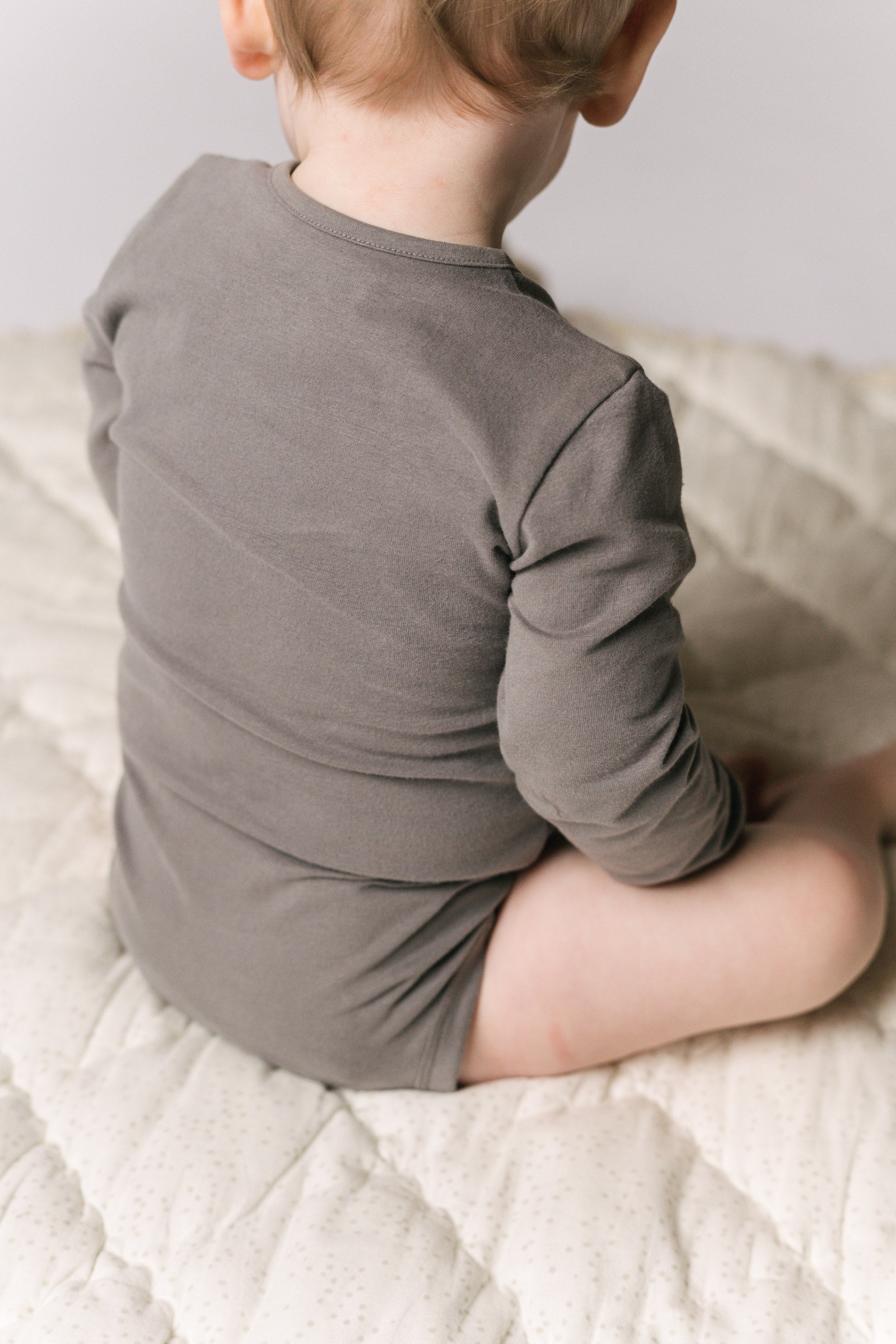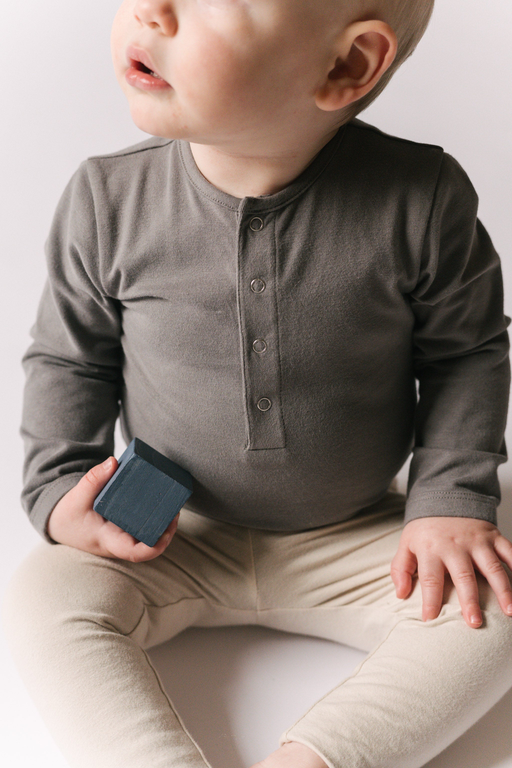 Ultra-fine, super soft organic cotton with just a hint of stretch. The Essentials One-Piece is a go-to layer designed with a snap front opening for quick changes, it’s available in eight versatile colors that Pehr perfectly with our Heritage Denim Overall or Essentials Pant.
