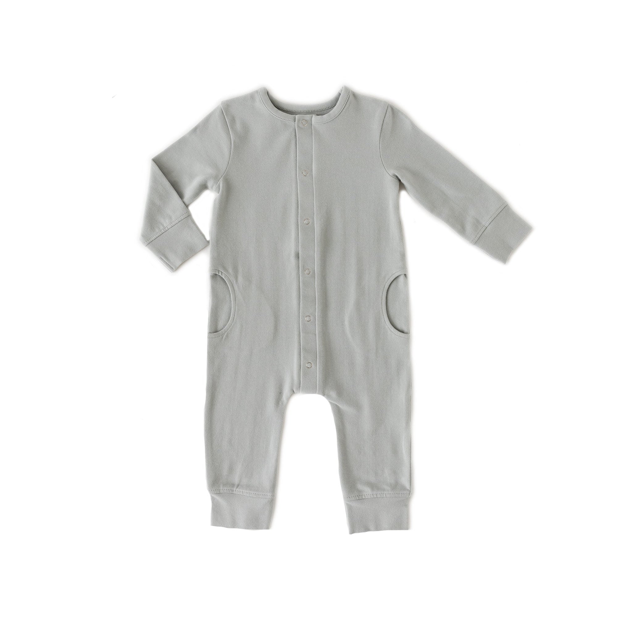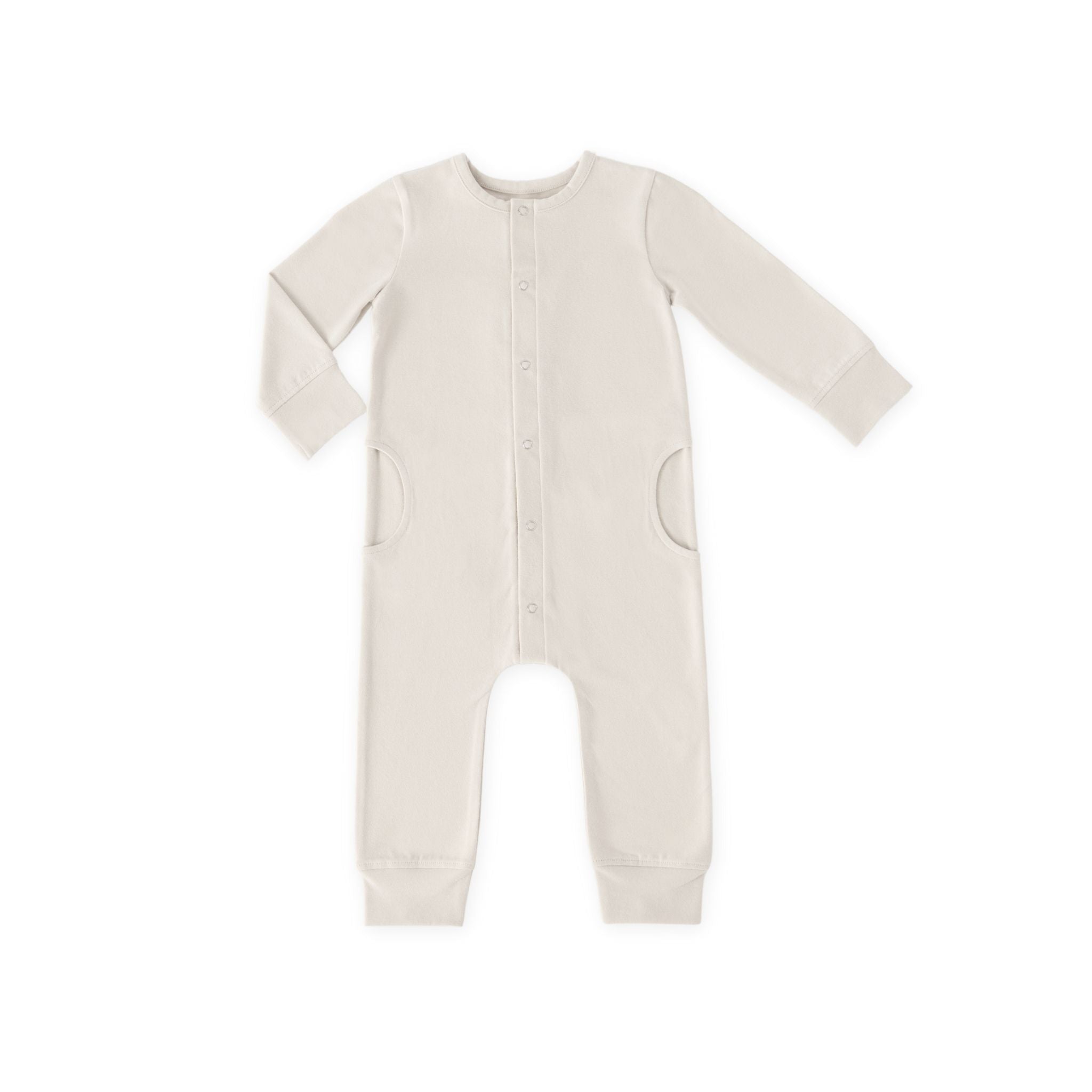 Crafted for comfort from ultra-soft, stretchy organic cotton. The Essentials Romper is as comfortable as it is a classic. Thoughtful details like cuffed sleeves and pant legs keep your little one snug, while sweet half-moon pockets add a charming touch. A must-have for everyday wear, lounging, or play.
