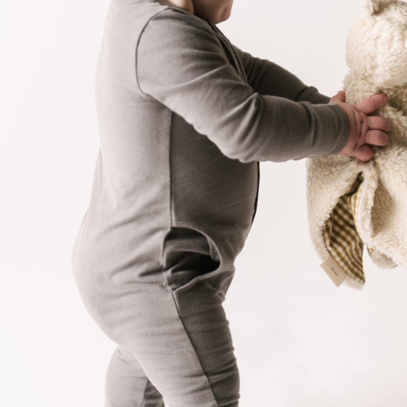 Crafted for comfort from ultra-soft, stretchy organic cotton. The Essentials Romper is as comfortable as it is a classic. Thoughtful details like cuffed sleeves and pant legs keep your little one snug, while sweet half-moon pockets add a charming touch. A must-have for everyday wear, lounging, or play.