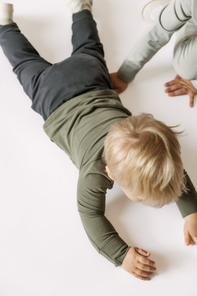 Soft, stretchy, and made for everyday wear. Crafted from ultra-soft organic cotton with a hint of stretch, the Essentials Top is a must-have from our Essentials Collection. Designed with cuffed raglan sleeves and a relaxed popover fit, it’s perfect for easy outfits and all-day play. Pehr with our Essentials Legging to complete the look.