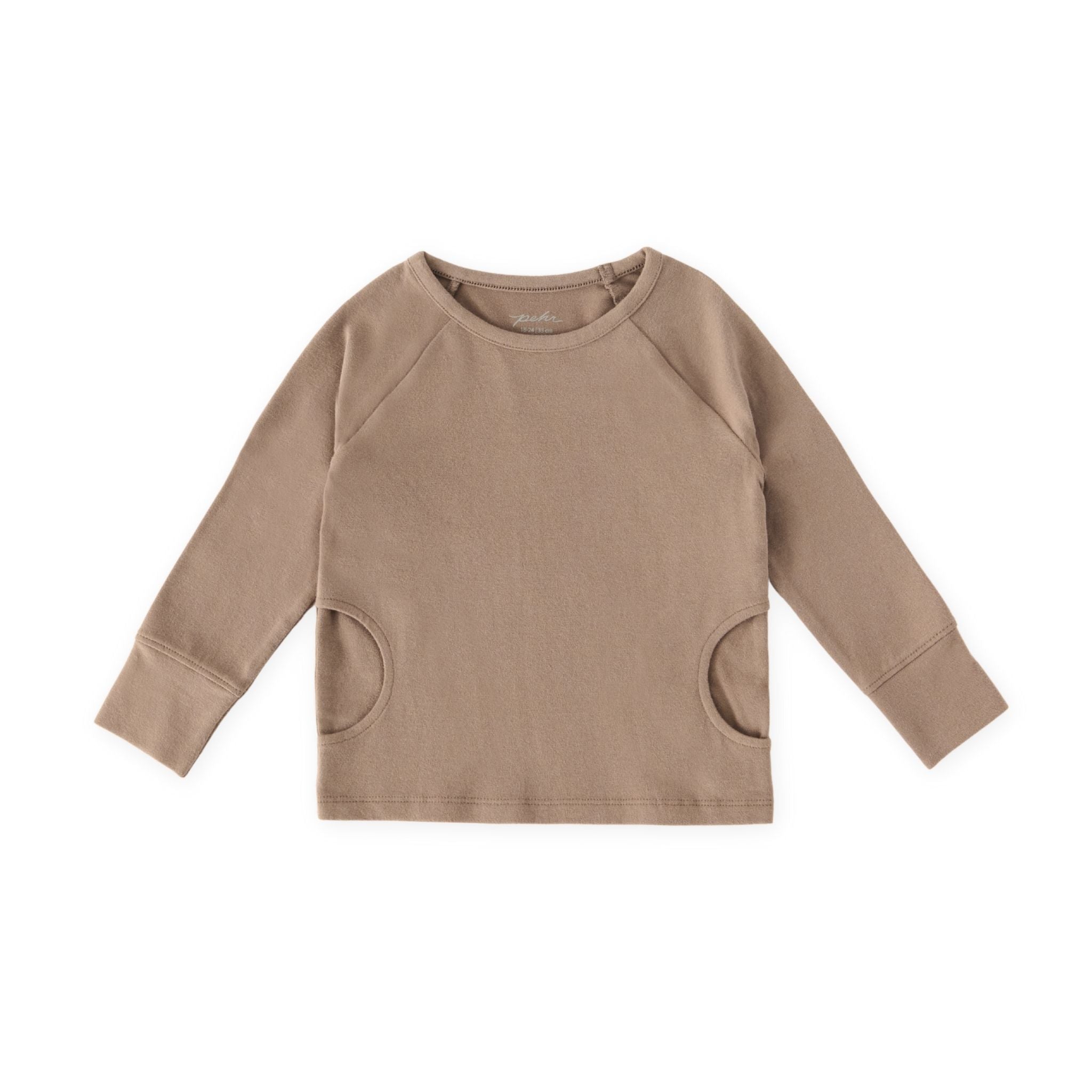Soft, stretchy, and made for everyday wear. Crafted from ultra-soft organic cotton with a hint of stretch, the Essentials Top is a must-have from our Essentials Collection. Designed with cuffed raglan sleeves and a relaxed popover fit, it’s perfect for easy outfits and all-day play. Pehr with our Essentials Legging to complete the look.