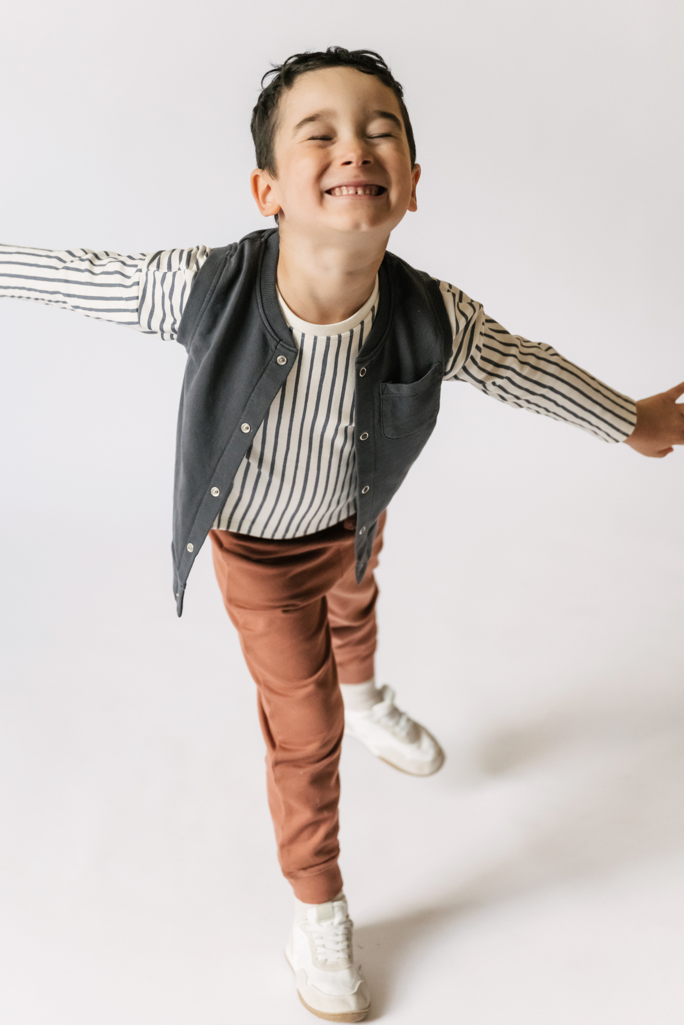The ultimate layering piece for every season. Our Patch Pocket Vest is a cozy essential designed to add just the right touch of warmth. Made from GOTS certified 100% organic cotton French Terry and garment dyed for a vintage-inspired look, it's soft, breathable, and made to mix and match. With easy front snaps, ribbed trim, and roomy patch pockets, it's perfect over any of our One-Pieces or Tops for effortless layering.