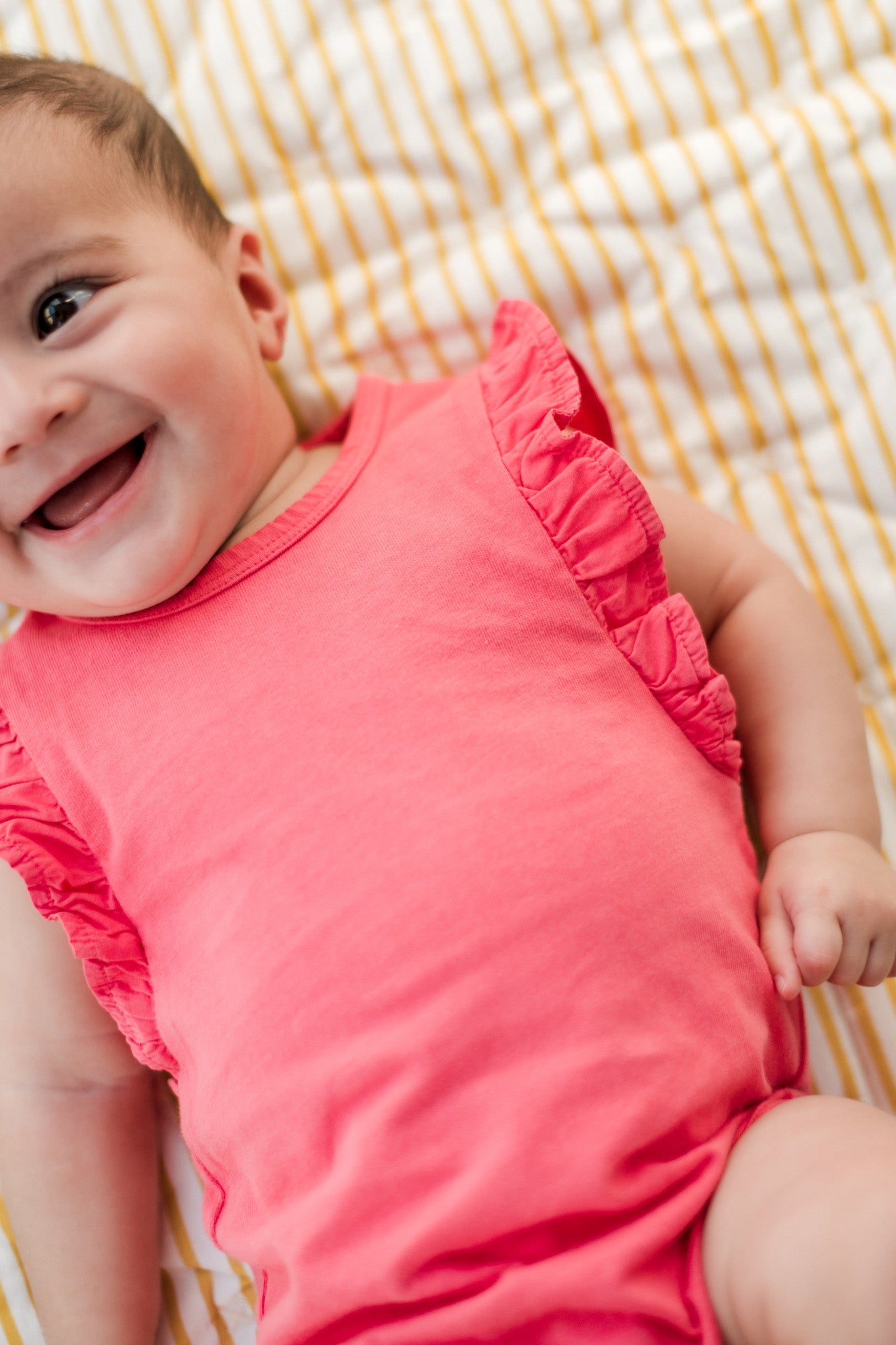 A little flutter goes a long way. Made for sun-filled days and picture-perfect moments, our Flutter One-Piece is a warm-weather favorite. Crafted from GOTS-certified organic cotton jersey and garment-dyed for an ultra-soft hand-feel, it’s pre-washed for that perfectly lived-in softness from day one. Delicate poplin flutter sleeves and easy back and bottom snaps make it as functional as it is adorable. Pair it with our matching Bloomers for a sweet summer set.