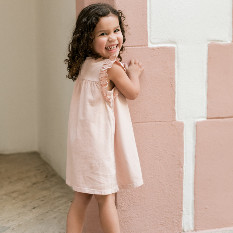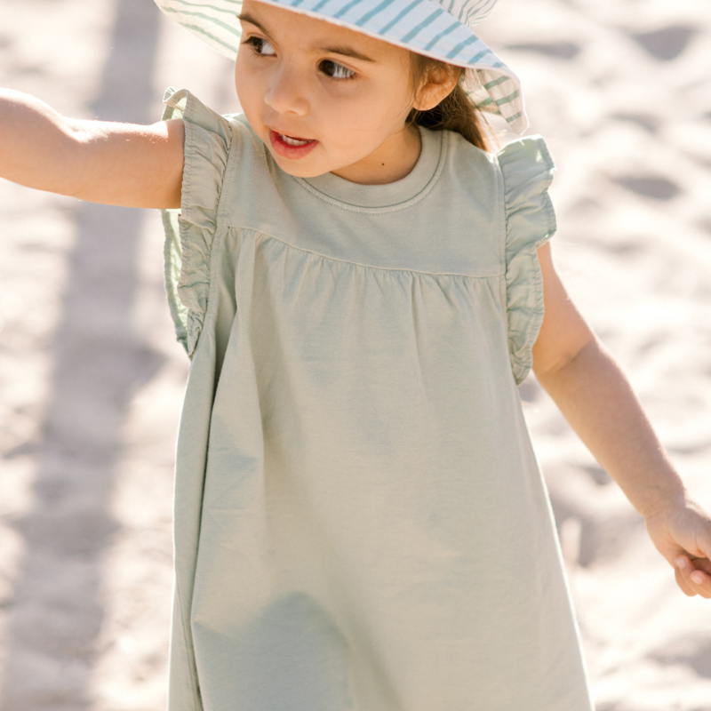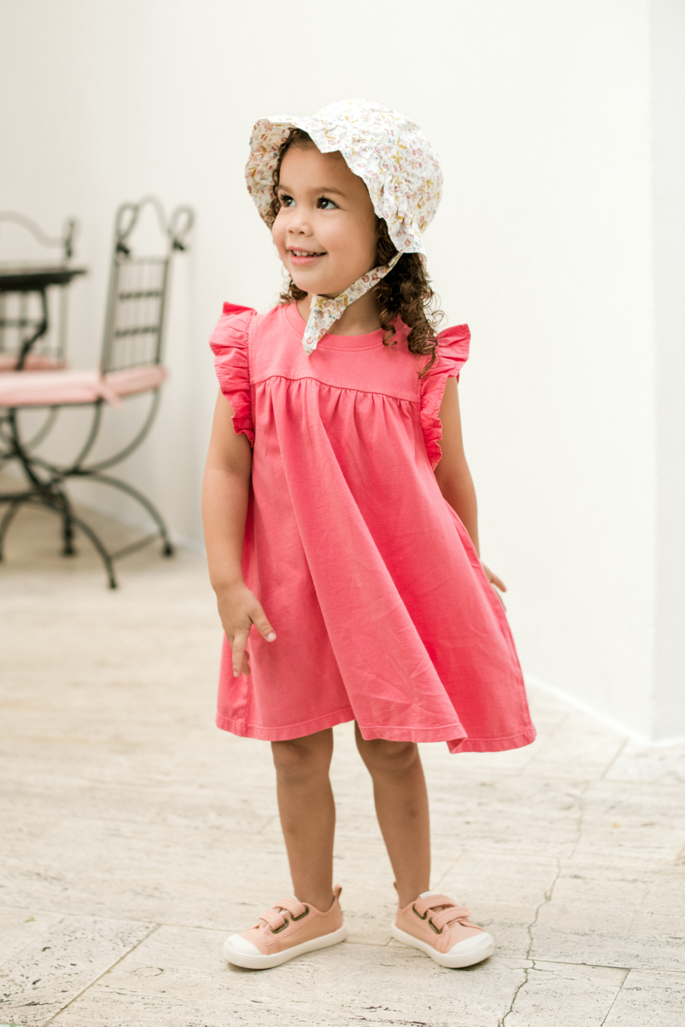 Easy, breezy, and full of charm. The Garment Dye Ruffle Dress is a warm-weather favorite, designed for everything from park play to special days out. Made from GOTS-certified organic cotton jersey and garment-dyed for an ultra-soft, lived-in feel, it’s finished with delicate poplin flutter sleeves and a relaxed silhouette. Available in three playful shades, it pairs perfectly with Sandals for summer!