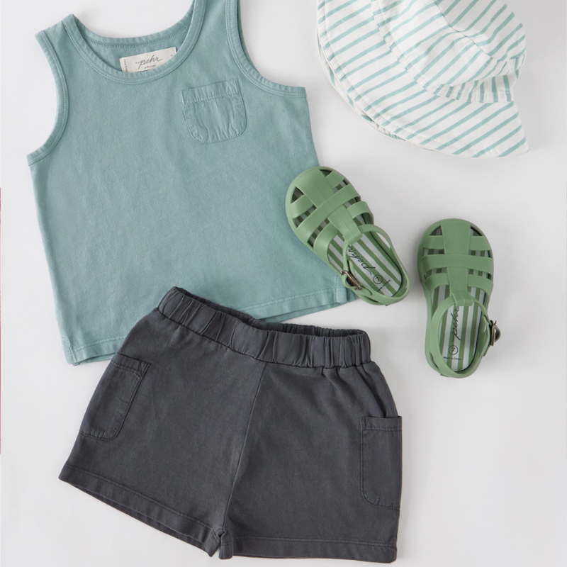 From class to camp! Our Garment Dye Short is crafted from GOTS certified 100% organic cotton jersey with functional side pockets and an easy elastic waist, they’re as comfortable as they are versatile. Each pair is garment-dyed for a one-of-a-kind, vintage-washed look and the softest hand-feel. Available in four playful shades, they’re perfect for mixing and matching with our Bucket Hats, or Garment Dye Tank.