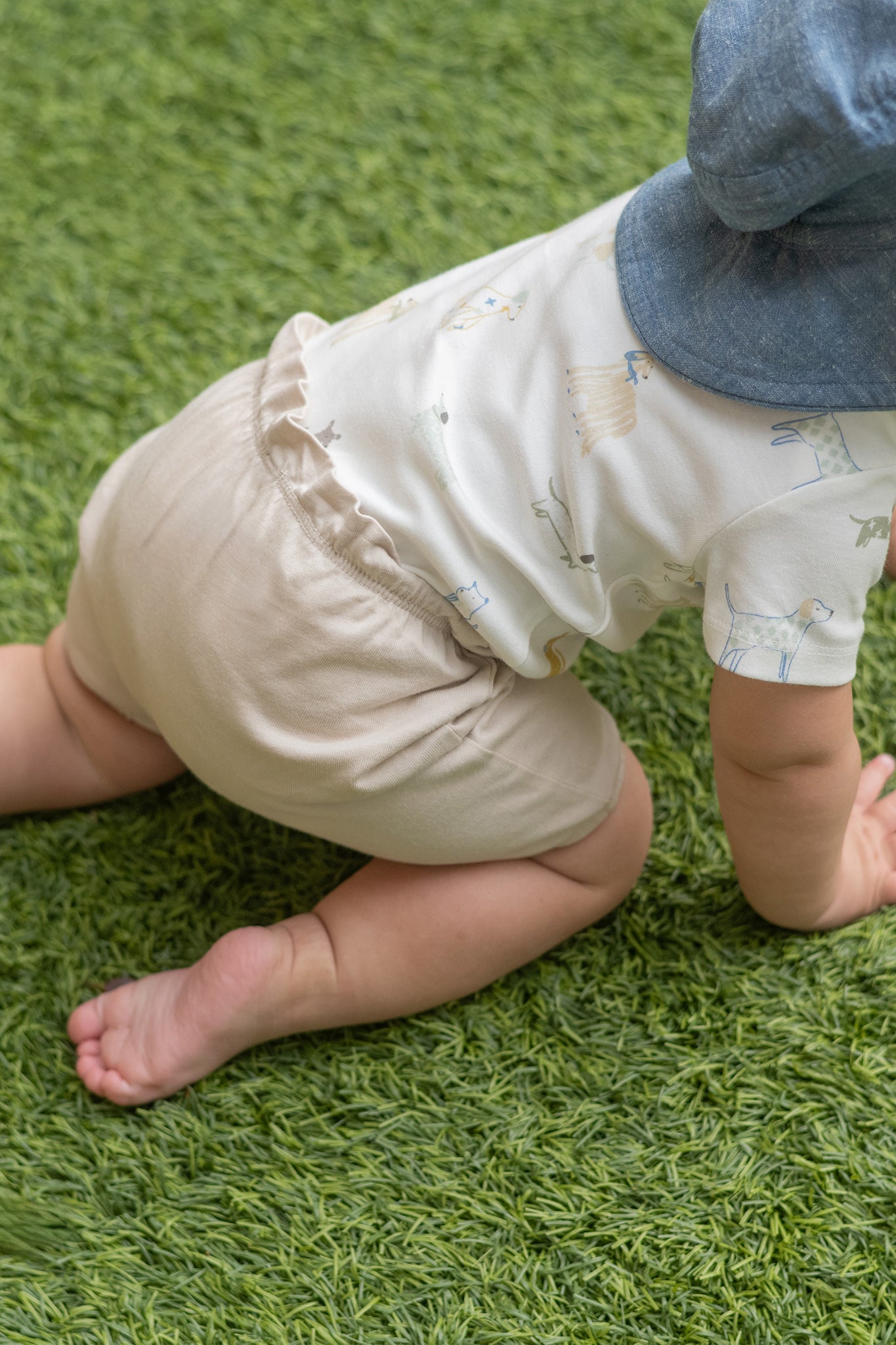 Easy to wear, endlessly versatile. Our Garment Dye Bloomer is made for summer play. Crafted from 100% organic cotton and non-toxic dyes, each piece is one-of-a-kind, with a soft vintage look and feel thanks to our unique garment-dyeing process. It’s designed with elastic at the waist and legs for an easy, breezy fit that keeps little ones comfy all day long. Pair it with our garment dye one-piece and Bucket Hat to complete the look.