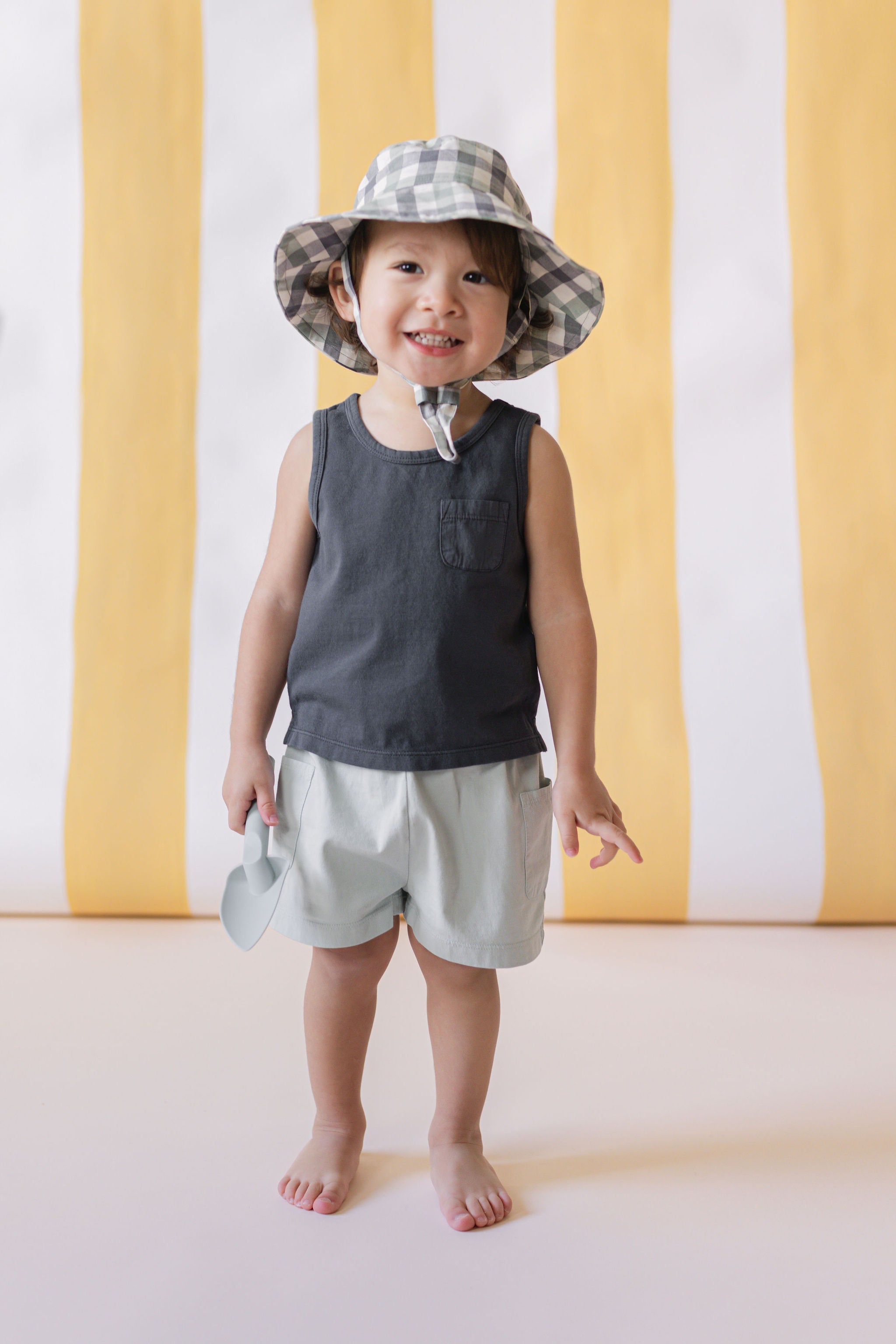 For days at home or adventures away. Our Garment Dye Tank is a summer staple crafted in 100% GOTS-certified organic cotton jersey. Finished with a special garment dye, every piece is one-of-a-kind with an irresistibly soft hand-feel. Available in four vintage-washed hues, it’s lightweight, breathable, and perfect for pairing with our Garment Dye Bloomers, Checkmate Bloomers, just add a Bucket Hat to complete the look.