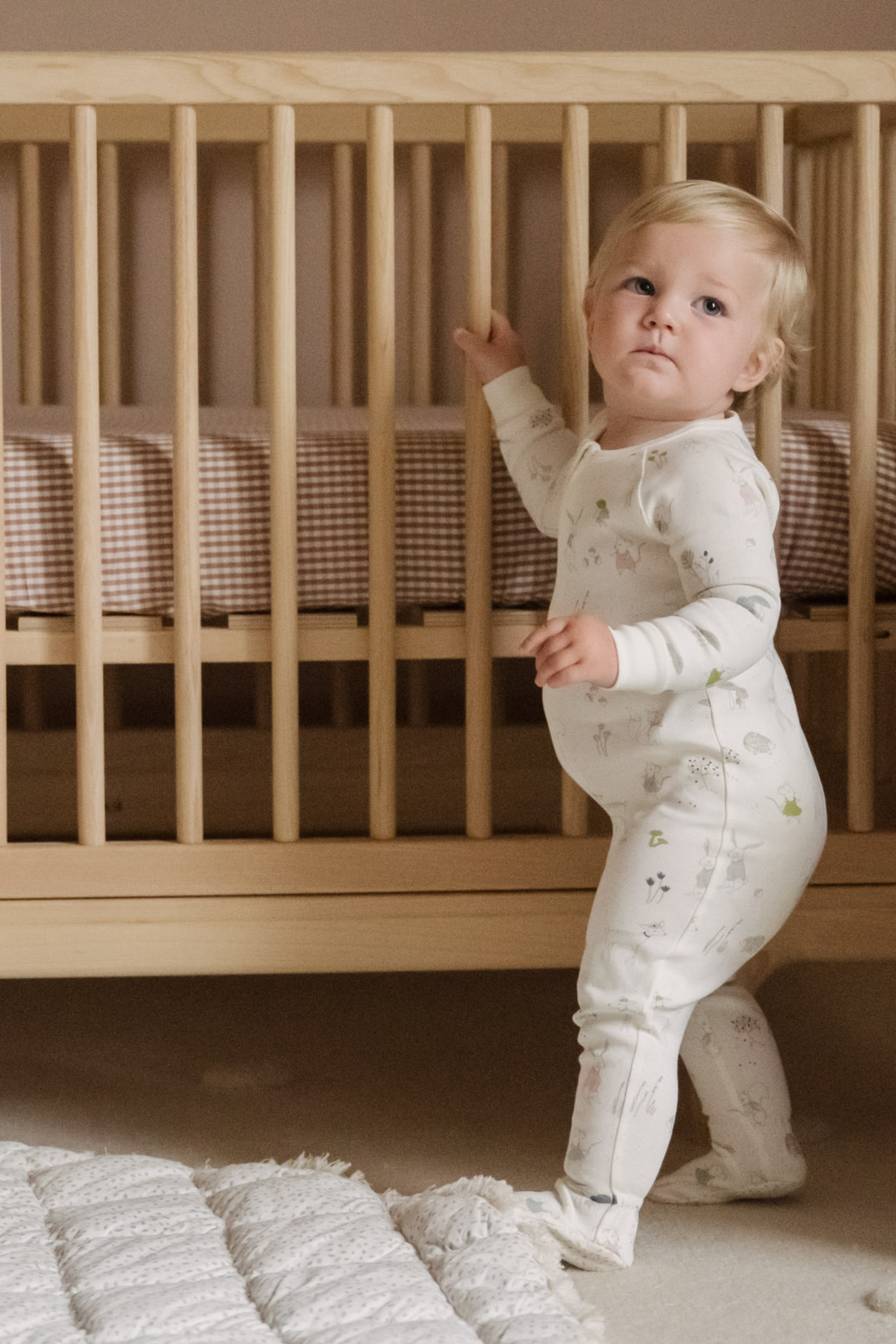 Our classic gingham brings a soft, lived-in feel to your little one’s nursery space. Crafted from GOTS certified 100% organic cotton gingham and stone washed for extra softness. Our Gingham Crib Sheet is gentle on sensitive skin and designed with a fully elasticized bottom for a snug, secure fit on standard crib mattresses up to 52" x 28" x 8". Pehr with our Blankets or Mobiles for a cozy, coordinated nursery look.