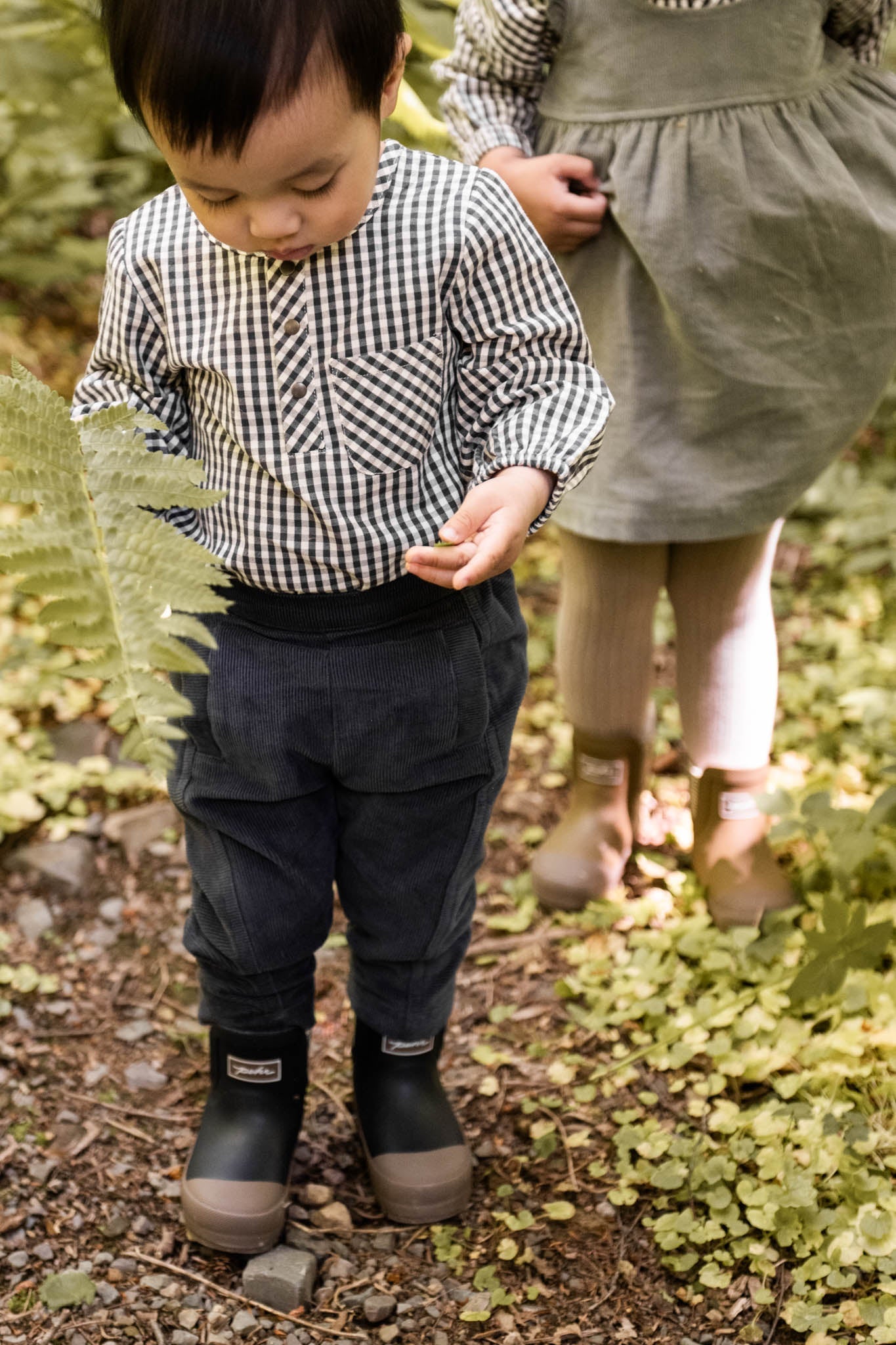 Perfect for special moments, big and small. Our Gingham Long Sleeve One-Piece is crafted from GOTS-certified 100% organic cotton in a timeless, stone-washed woven check. With a Henley snap placket, front patch pocket, and elasticized cuffs, it blends classic style with everyday comfort. Snaps at the bottom make changes quick and easy, while the soft, breathable fabric keeps your little one comfy through every adventure. Pehr with our Denim Pull-Up Jeans or Denim Overall for a picture-perfect look.