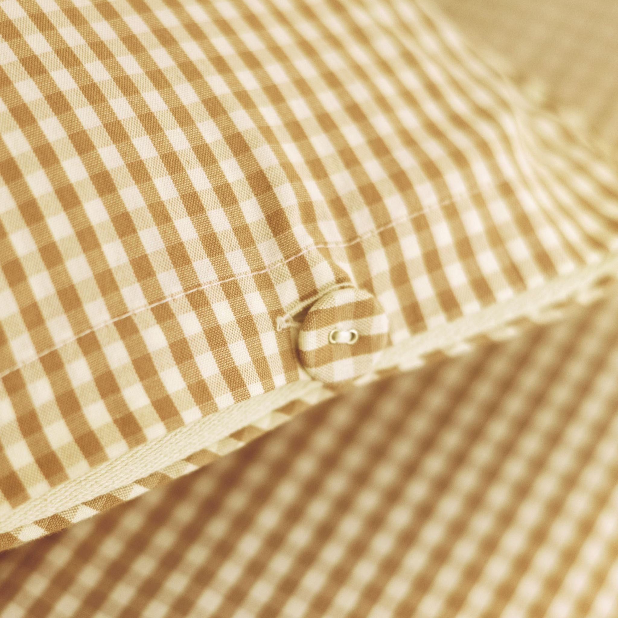 • Gingham-covered buttons at pillow opening