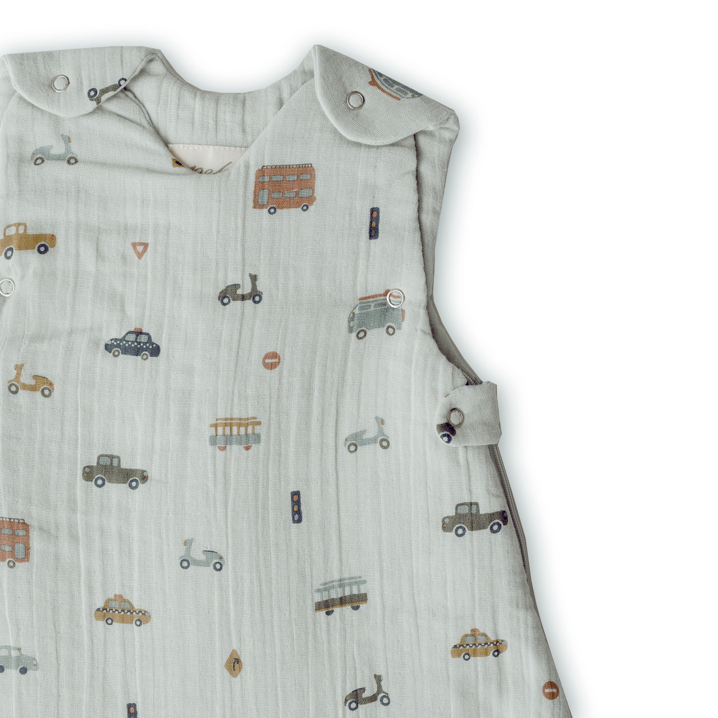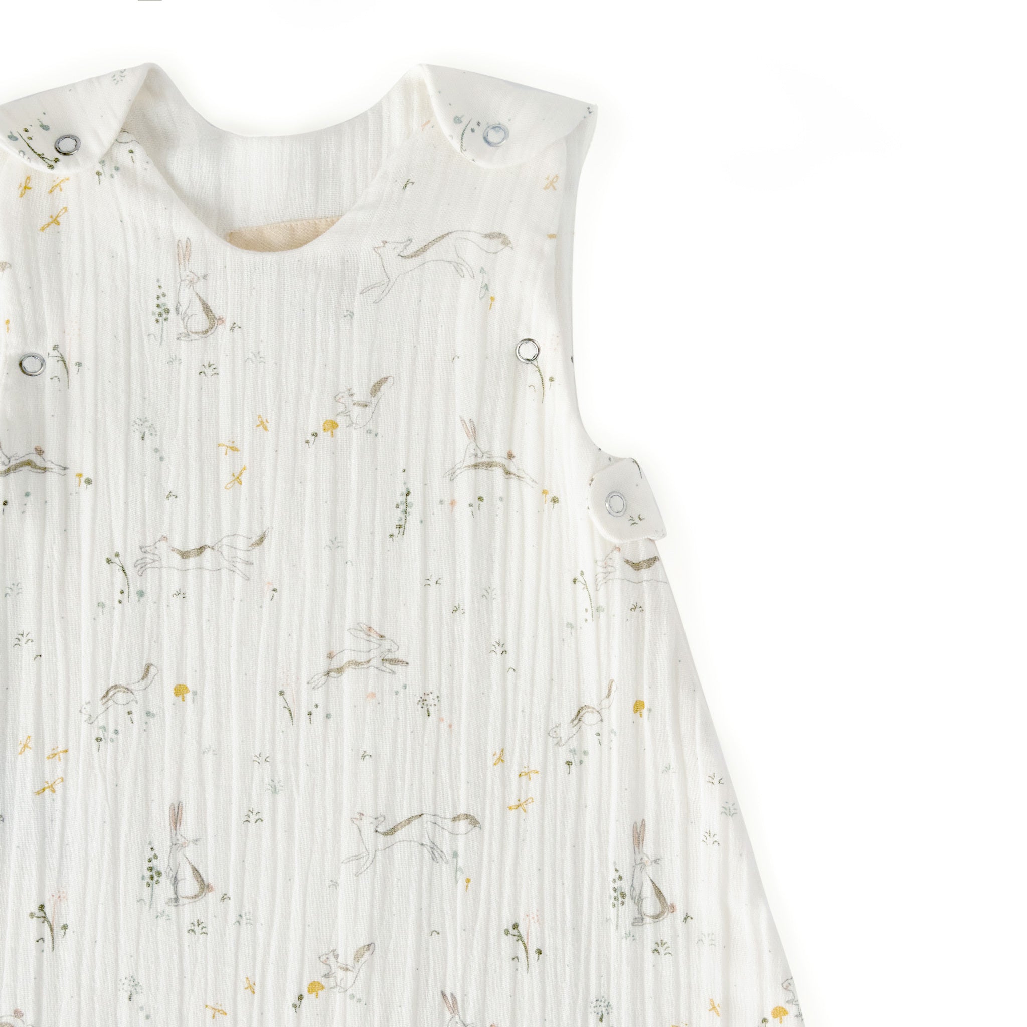 - Adjustable underarm snaps (0–9m) for a snug fit