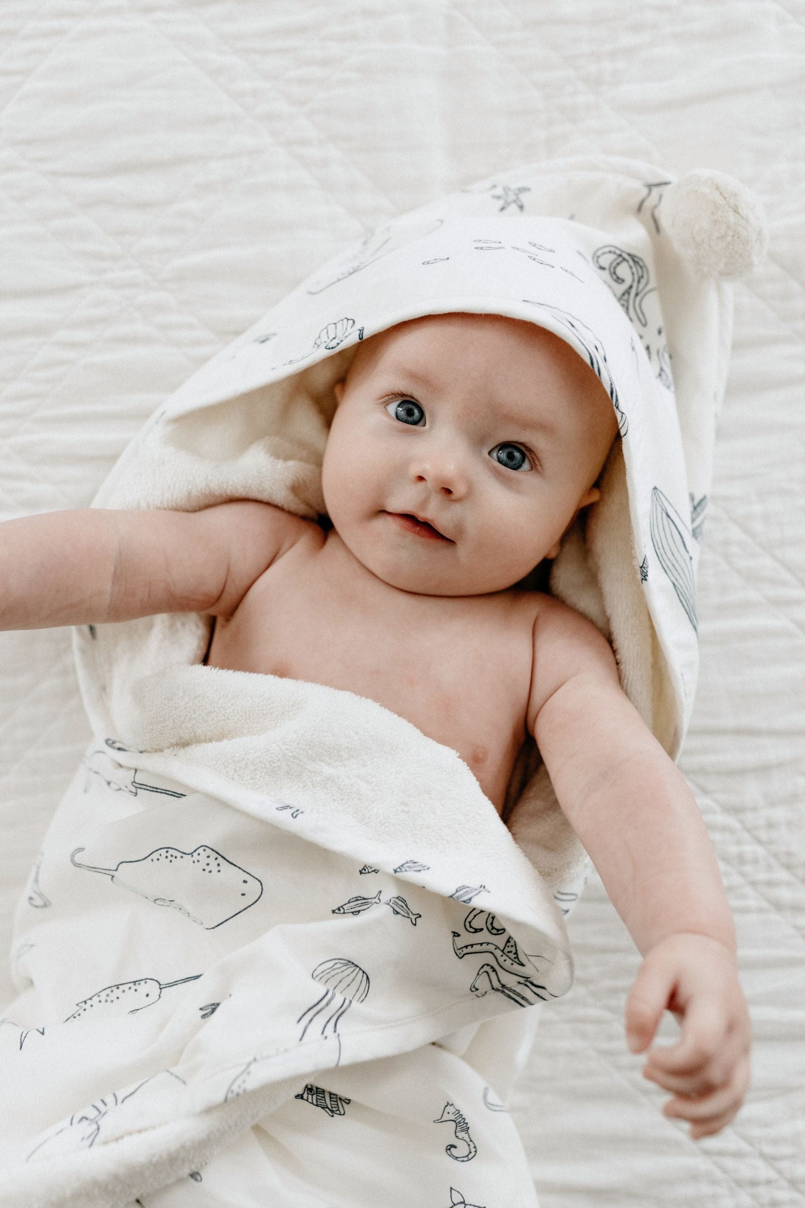 Soft and absorbent essential that keeps little ones snug from the bath to the beach.