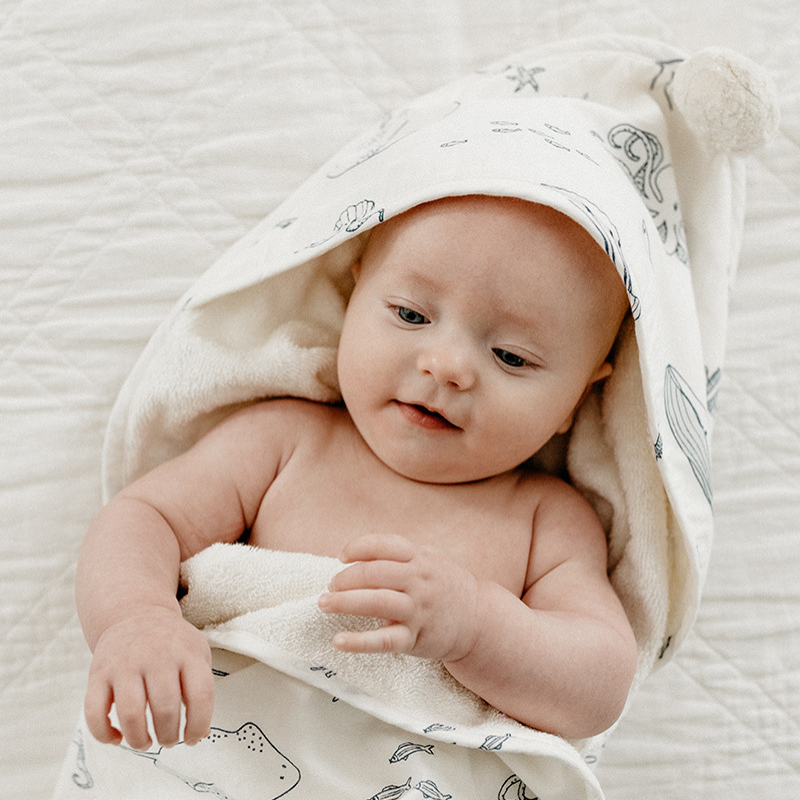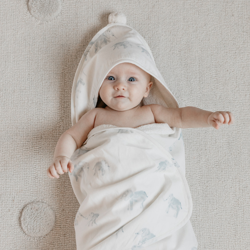 Crafted with brushed cotton and absorbent French terry, it wraps your baby in cozy comfort after every splash.