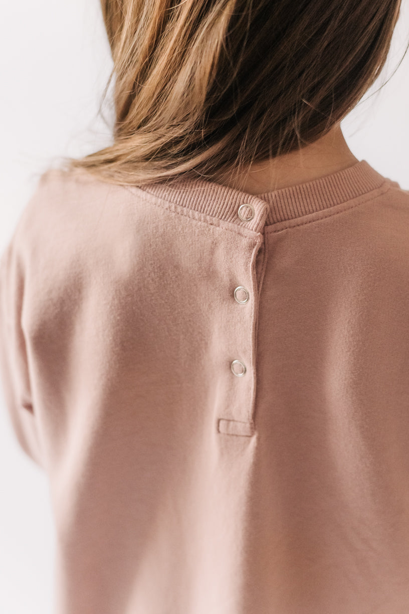 All-day comfort meets everyday charm. Made from GOTS certified 100% organic French Terry cotton and garment dyed for a soft, vintage-washed look, our Peplum Dress is made for every moment—recess, birthday parties, and everything in between. With a relaxed fit, dropped shoulders, ribbed cuffs, and a sweet peplum ruffle, it's as comfy as it is cute. A back snap placket makes changes quick and easy. Pehr with our recess sneakers to complete the look.