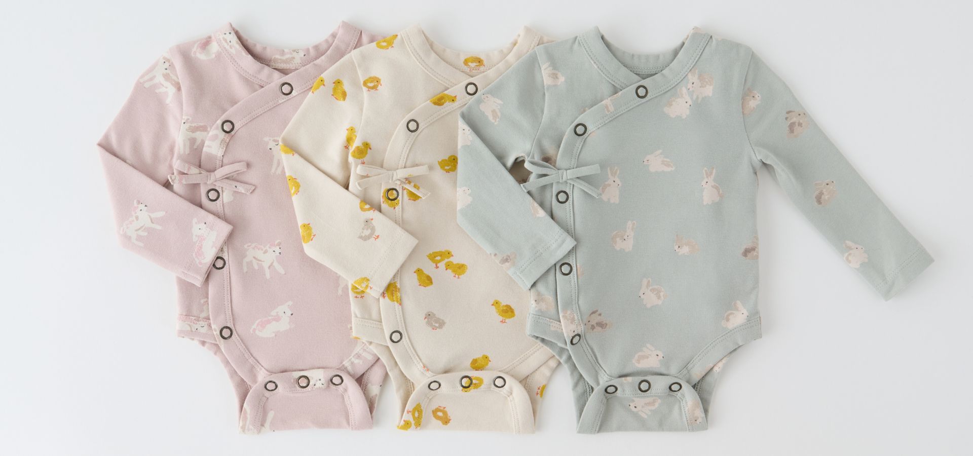 - Kimono-style front and bottom snaps for easy changes