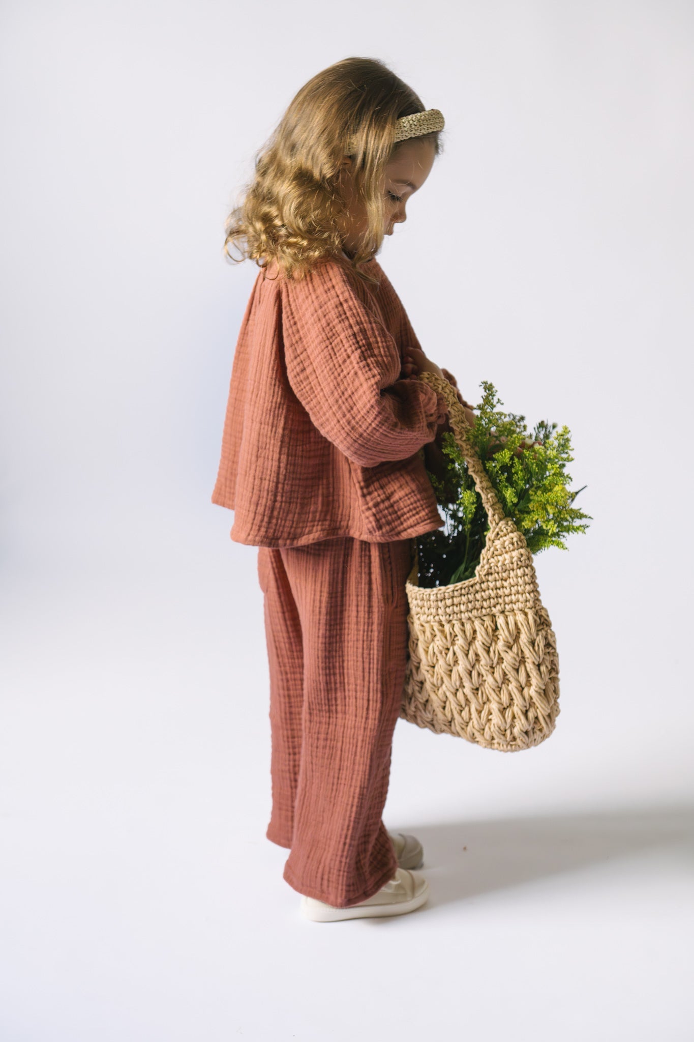 Soft, breathable, and made for everyday ease. These relaxed toddler pants are crafted from GOTS certified 100% organic 4-layer muslin with a naturally crinkled texture - no ironing needed. Designed with an elastic waistband, roomy fit, and pockets for tiny treasures, they’re perfect for play, travel, and everything in between. Pehr with our Muslin Long Sleeve or Twirl Top for an easy, breezy outfit.