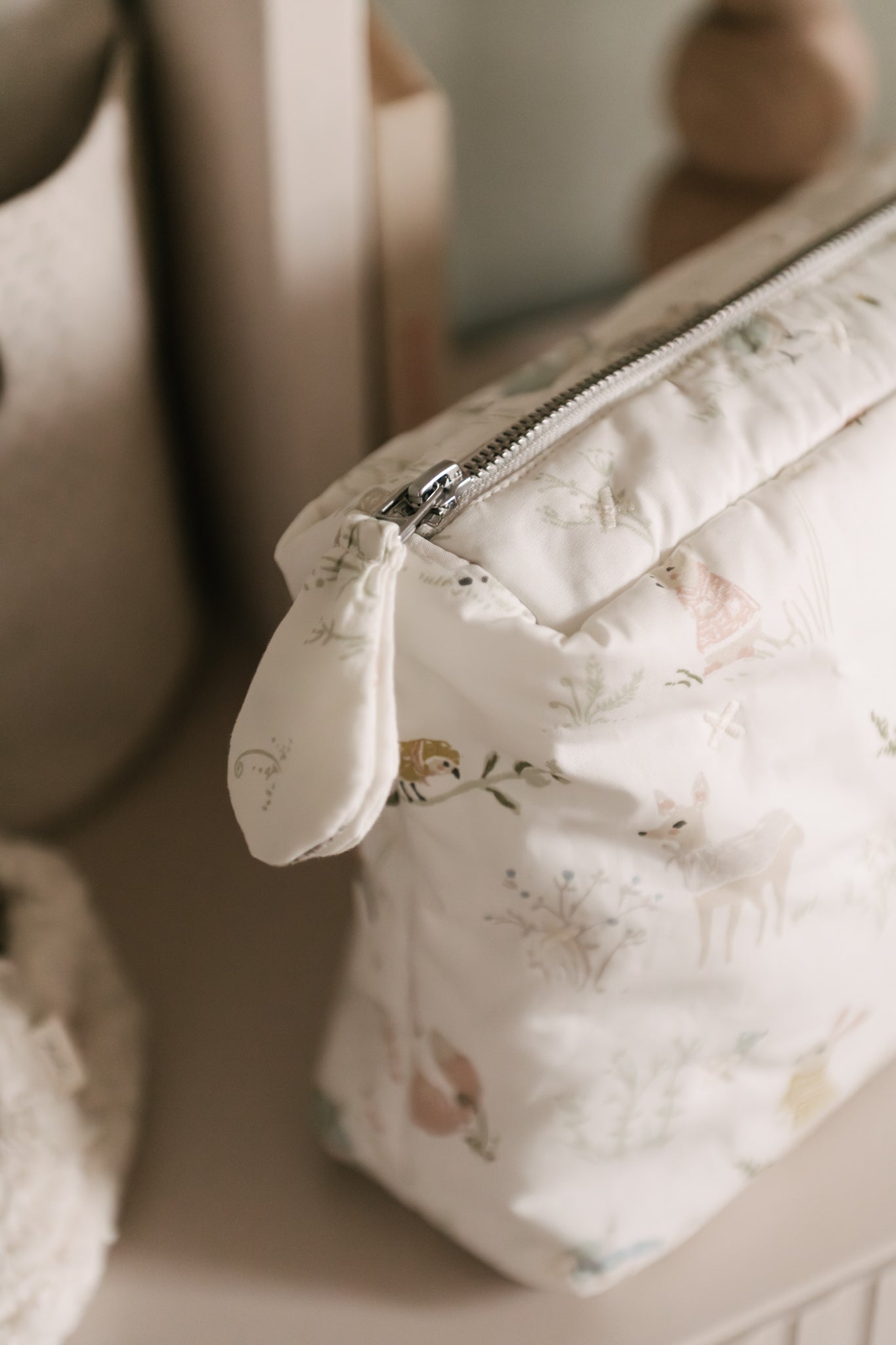 Fully machine washable, this pouch offers the perfect balance of practicality and style for parents on the move.