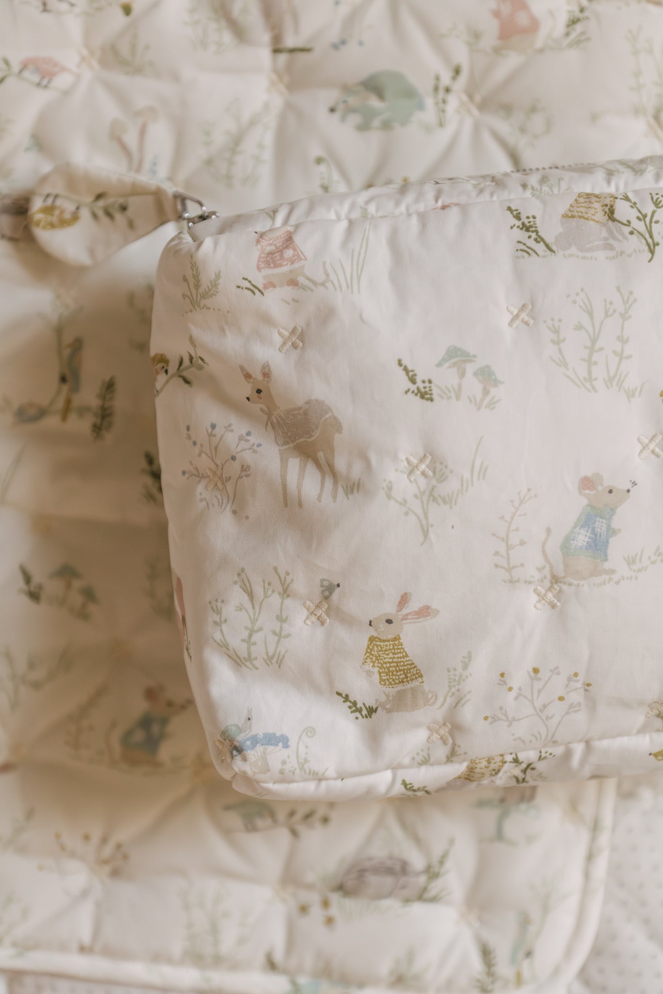 Meet your new everyday essential: the much-loved On The Go Pouch, thoughtfully designed to keep all your must-haves beautifully organized. Made from coated organic cotton, it’s spacious enough for diapers, an extra outfit, a swaddle, bottles—anything you need when heading out with baby (or for your own weekend toiletries, Mama!). With two interior pockets, a wipeable exterior, and easy-care machine wash instructions, this pouch is as practical as it is charming. For even more effortless organization, it pairs perfectly with our Changing Pads and Weekender Bag.