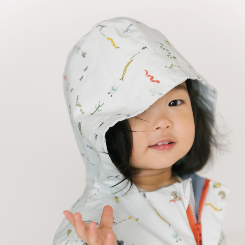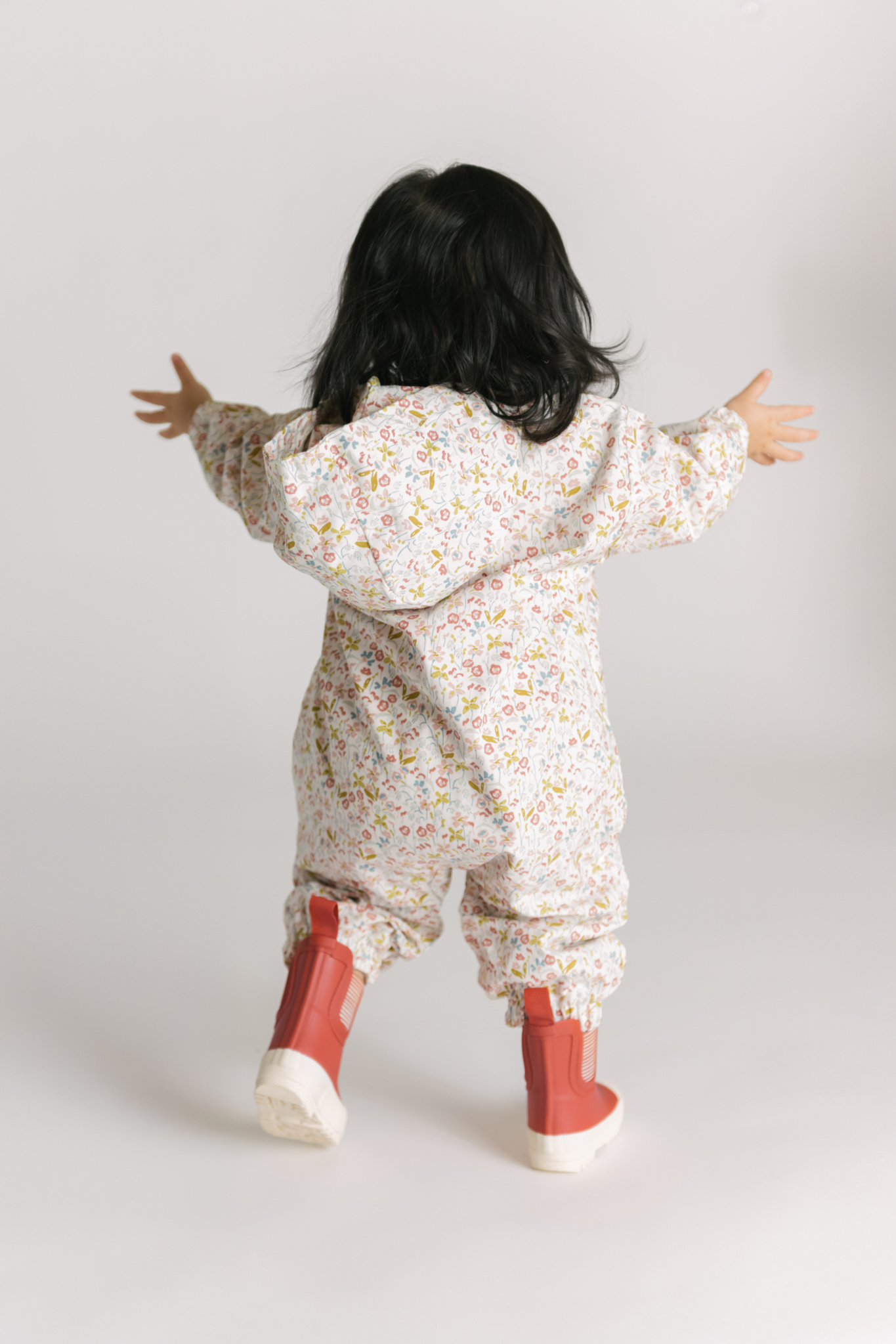 Made for puddle jumping, park days, and every splash in between. Our water-repellent Splash Suit is the perfect outer layer for baby’s first outdoor adventures. Designed for comfort and ease, it features a two-way zipper with hidden snaps, elastic cuffs, and a cozy hood for added coverage. Fully lined with soft 100% organic cotton and finished with a name tag inside—because little explorers go far. Pehr with our Voyager Rain Boot for a splash safe look.