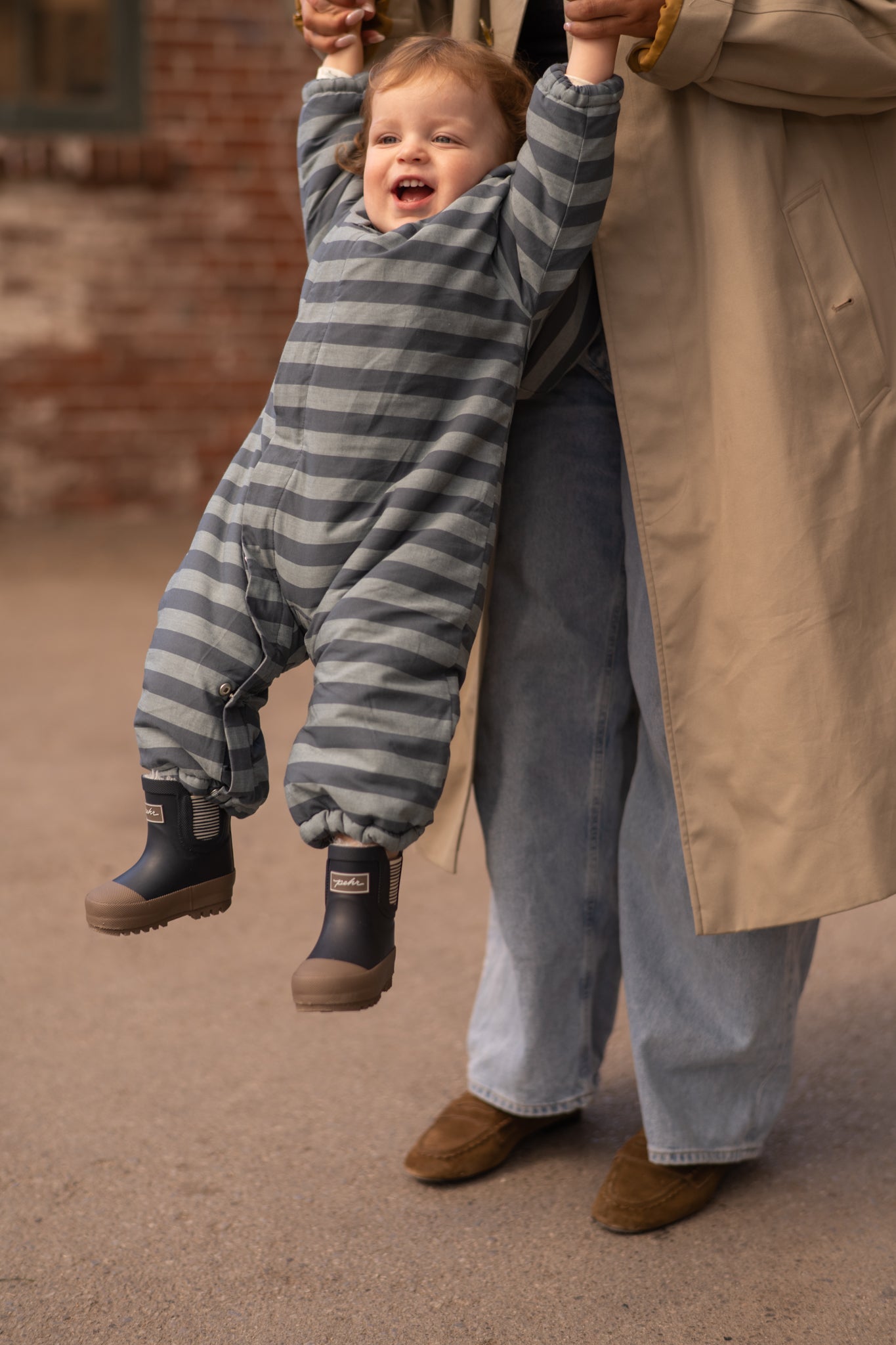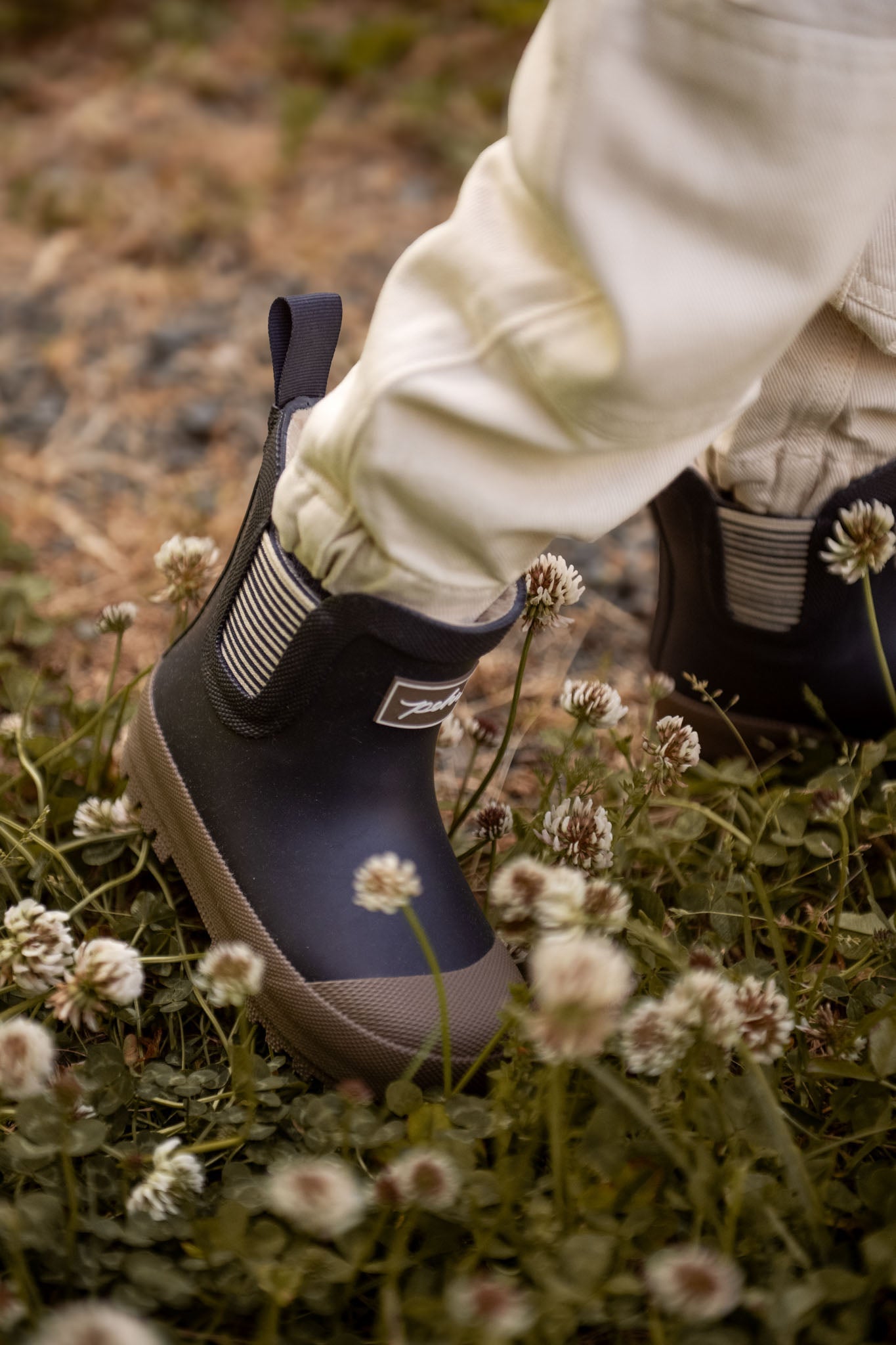 Made for chilly days and rainy play. Crafted from durable 100% natural rubber and lined with soft 100% polyester sherpa, our Pathfinder Toddler Boots are waterproof, lightweight, and flexible—providing cozy comfort in cold and wet winter temperatures. A wide toe box supports natural movement, while the zero-drop sole encourages balance and healthy foot development. With a non-slip tread for extra traction and an easy-on design featuring elastic side gores and a back pull-loop. Pehr with our Corduroy Quilted Jacket, Dropped Shoulder Long Sleeve and Vintage Twill Joggers to complete the look.