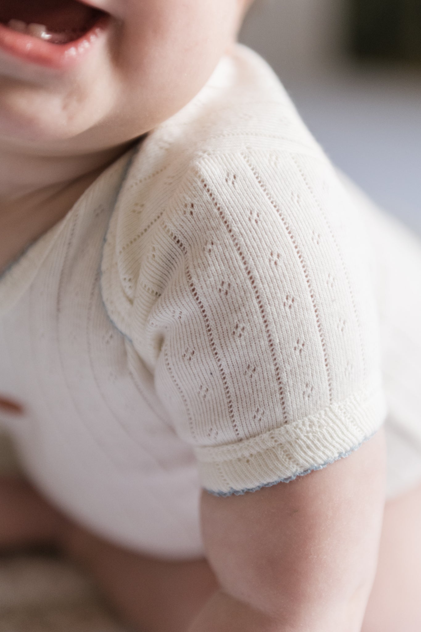 100% GOTS-certified organic cotton pointelle for a soft, breathable feel on baby’s skin