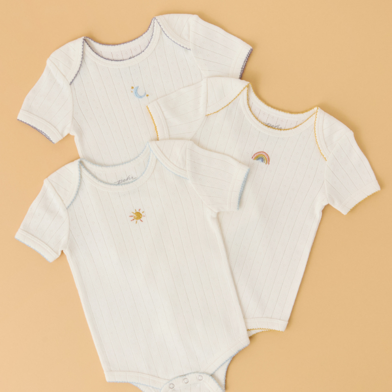 Thoughtfully designed for life’s very first moments, the Petit Pehr Pointelle One-Piece 3-Pack is a sweet, gift-ready set of soft 100% organic cotton essentials for newborns and babies.