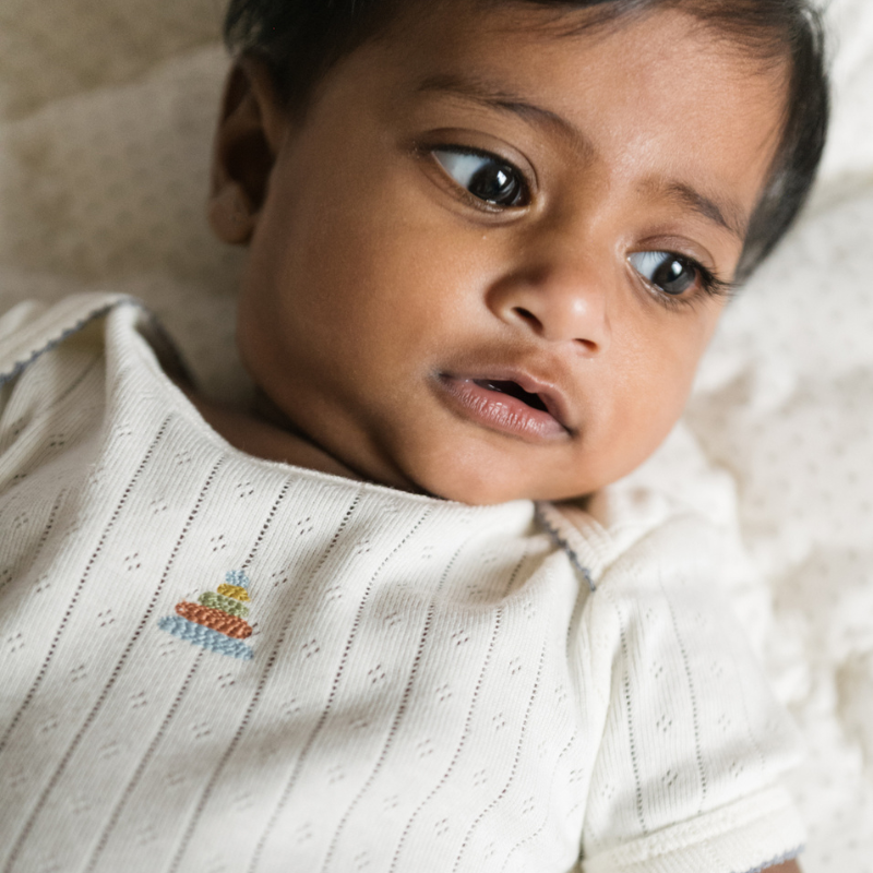 • 100% GOTS-certified organic cotton pointelle for a soft, breathable feel on baby’s skin