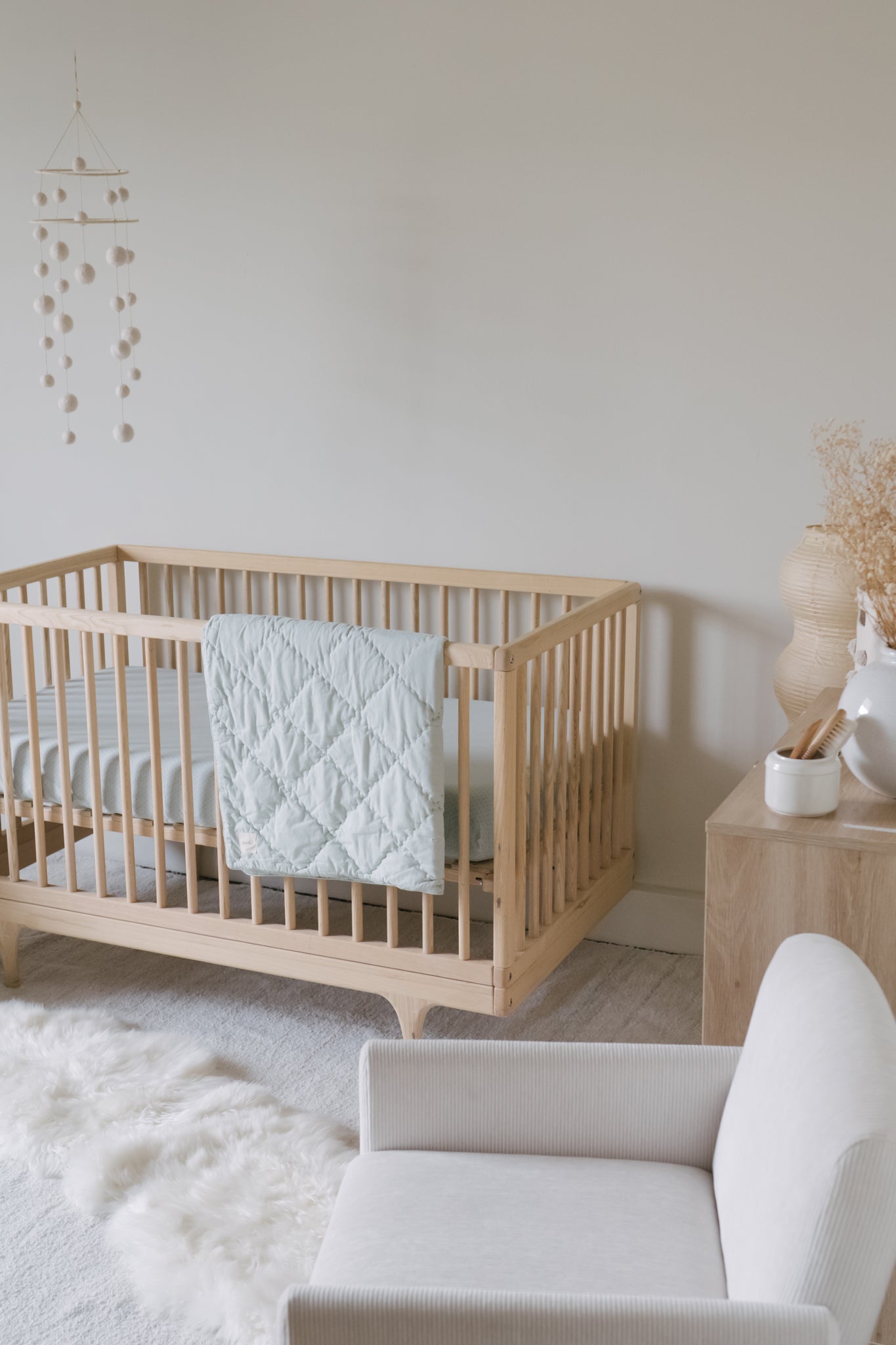 Baby's first must-have nursery accessory. Made from GOTS certified 100% organic cotton with a 180 GSM cotton filling, our Pin Dot Quilted Blanket is the perfect layer for tummy time, stroller rides, or snuggles. Hand-stitched quilting and soft all-over pin dots add a gentle, timeless charm. Available in three baby-perfect hues Peony, Sea, and Pebble, Pehr with our Pin Dot Crib sheet, Pin Dot Swaddle, and Stargazer Mobile for a coordinated nursery look.