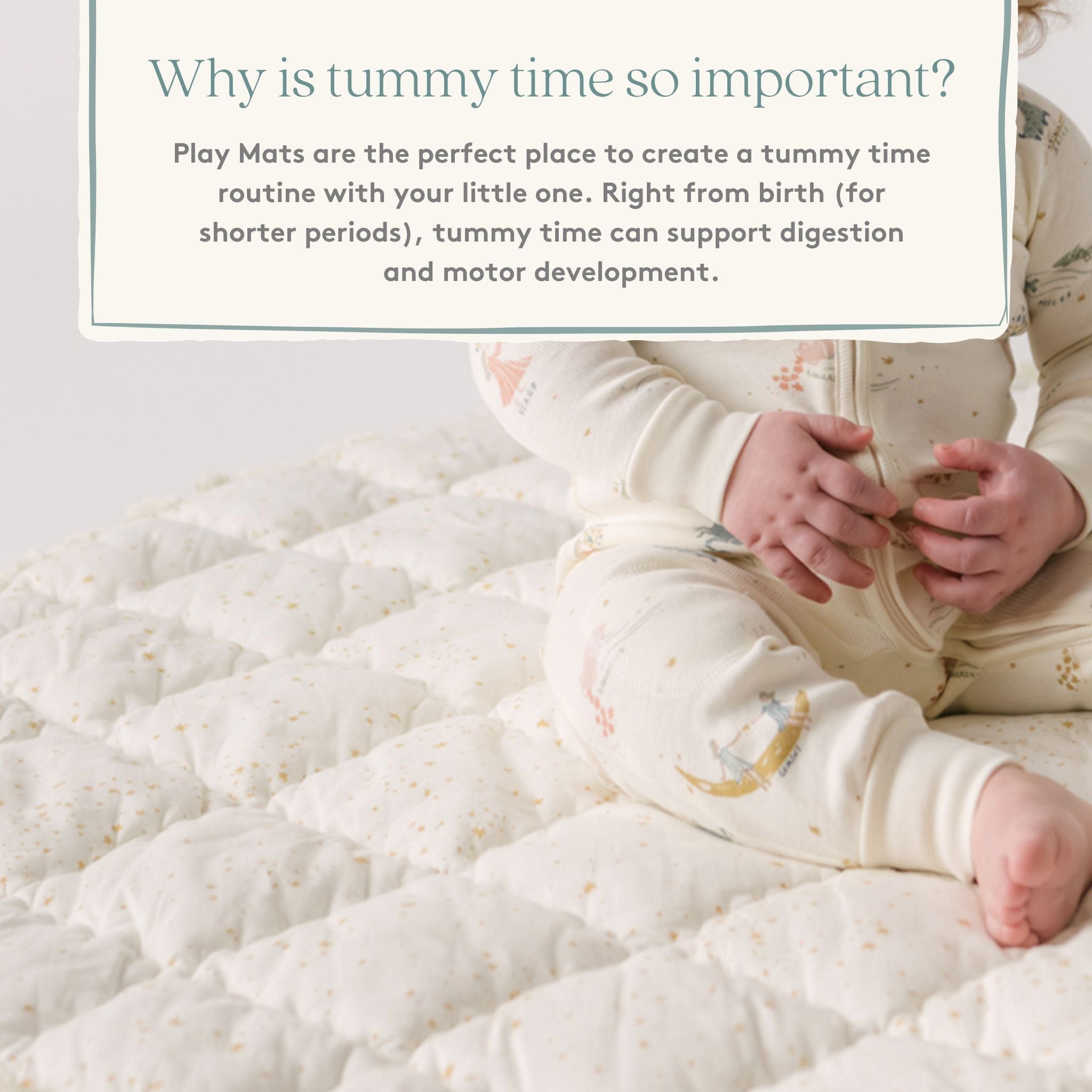 The perfect place to create a tummy time routine with your little one. Right from birth (for shorter periods), tummy time can support digestion and motor development.