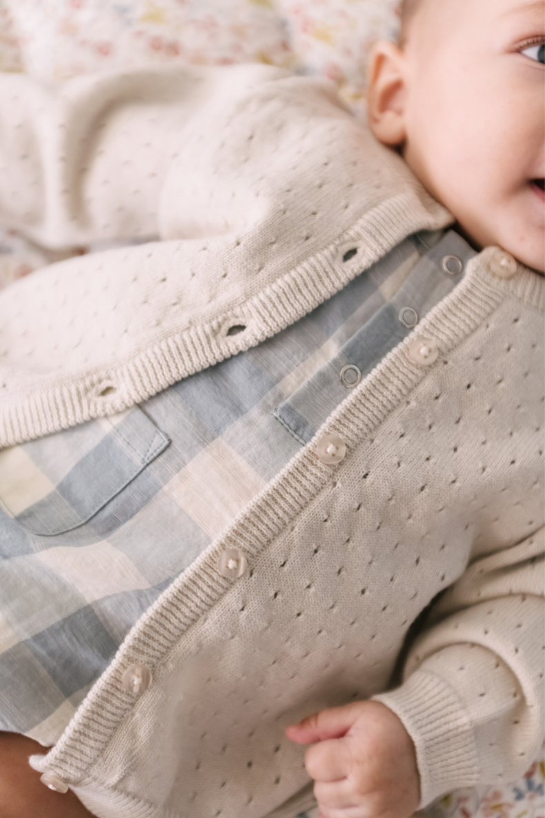 Crafted from GOTS certified 100% woven organic cotton, this lightweight one-piece is soft, breathable, and gentle on little skin.