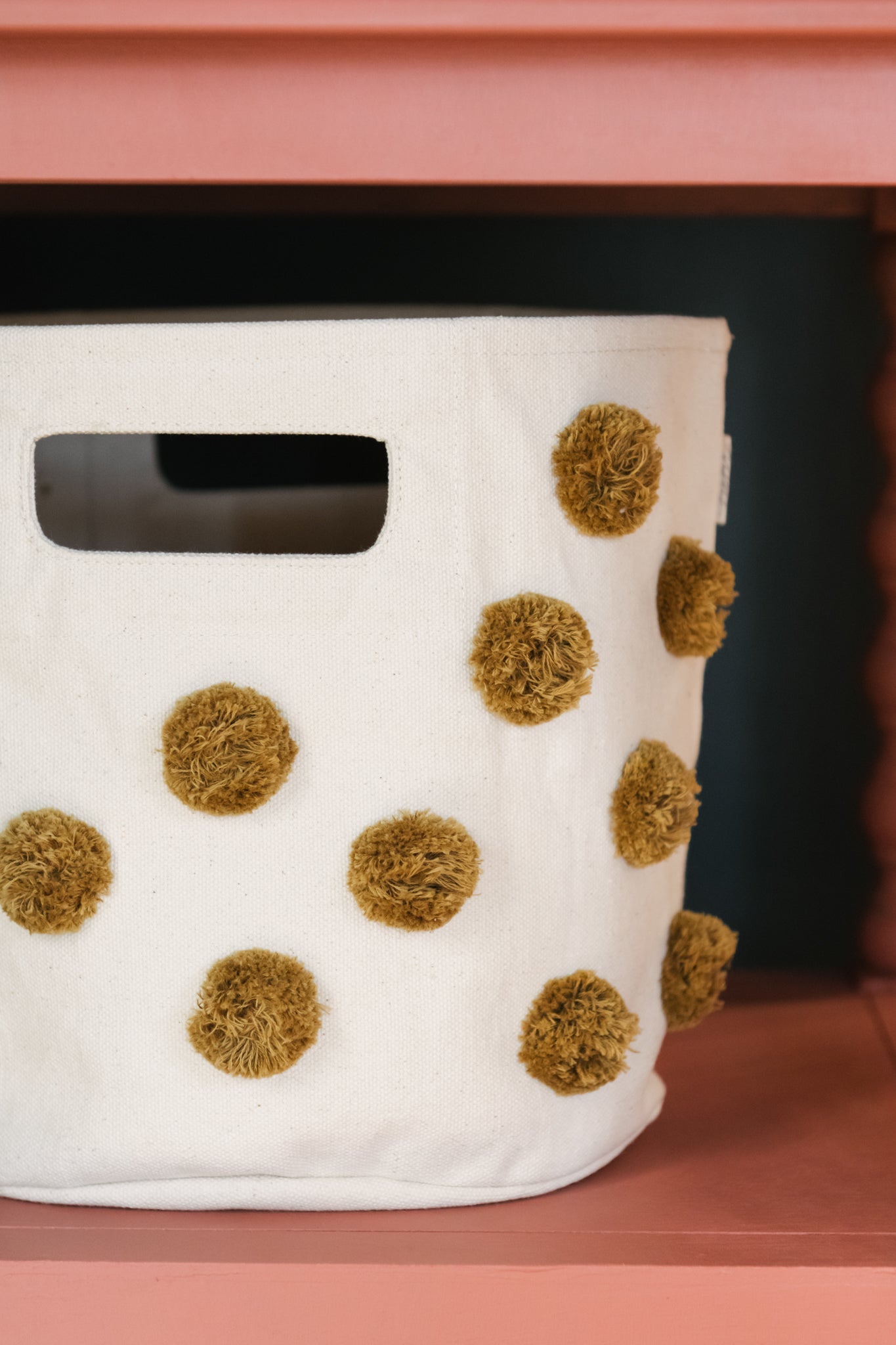 Add storage and decor to any space with our Pom Pom Pint basket, made to hold just the right amount of everyday essentials. Whether it’s organizing diapers in the nursery, corralling toys in the playroom or styling shelves around your home, this storage basket is as versatile as it is beautiful. Crafted in 100% cotton canvas with handcrafted pom poms, it’s made to fit seamlessly into any room.