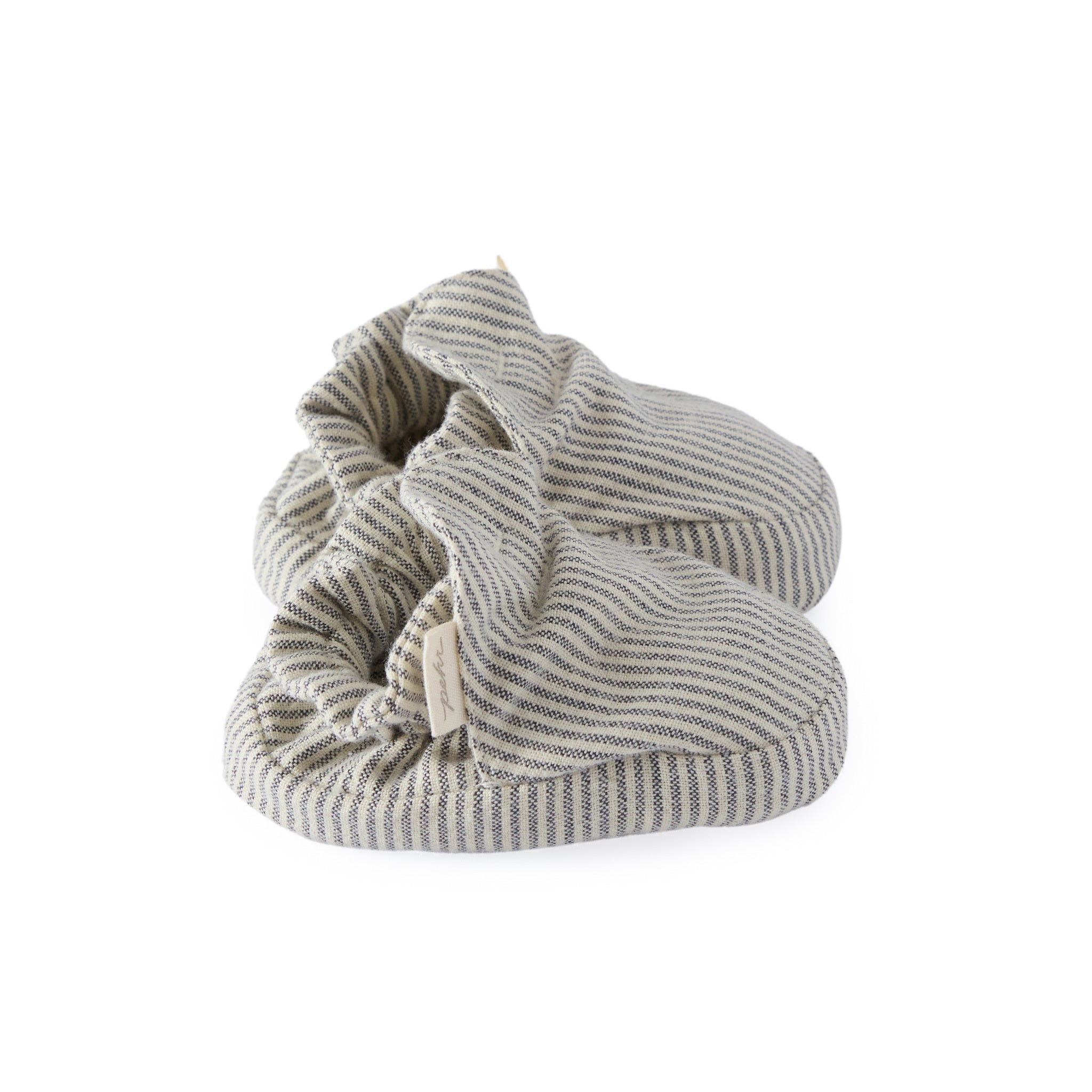 The sweetest baby booties for tiny toes. Our Railroad Booties are made from GOTS certified organic cotton in a soft, breathable railway stripe. Designed with an elasticized opening, they slip on easily and stay snug on wiggly feet. With a soft canvas sole, lined interior, and drawstring bag for storing, they’re the perfect finishing touch for any little outfit. Outfit your little one with our Railroad Baby Overalls to complete the look.