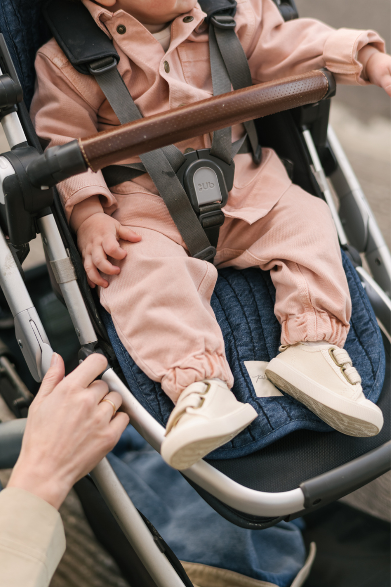 Our reversible stroller insert adds comfort, protection, and effortless style to every ride. Designed for everyday use, it features soft, quilted 100% organic cotton on both sides for breathable comfort year-round. Thoughtfully finished with a hypoallergenic fill and easy-to-use harness openings, it fits most standard 5-point harness strollers while helping protect your stroller’s interior from daily wear.