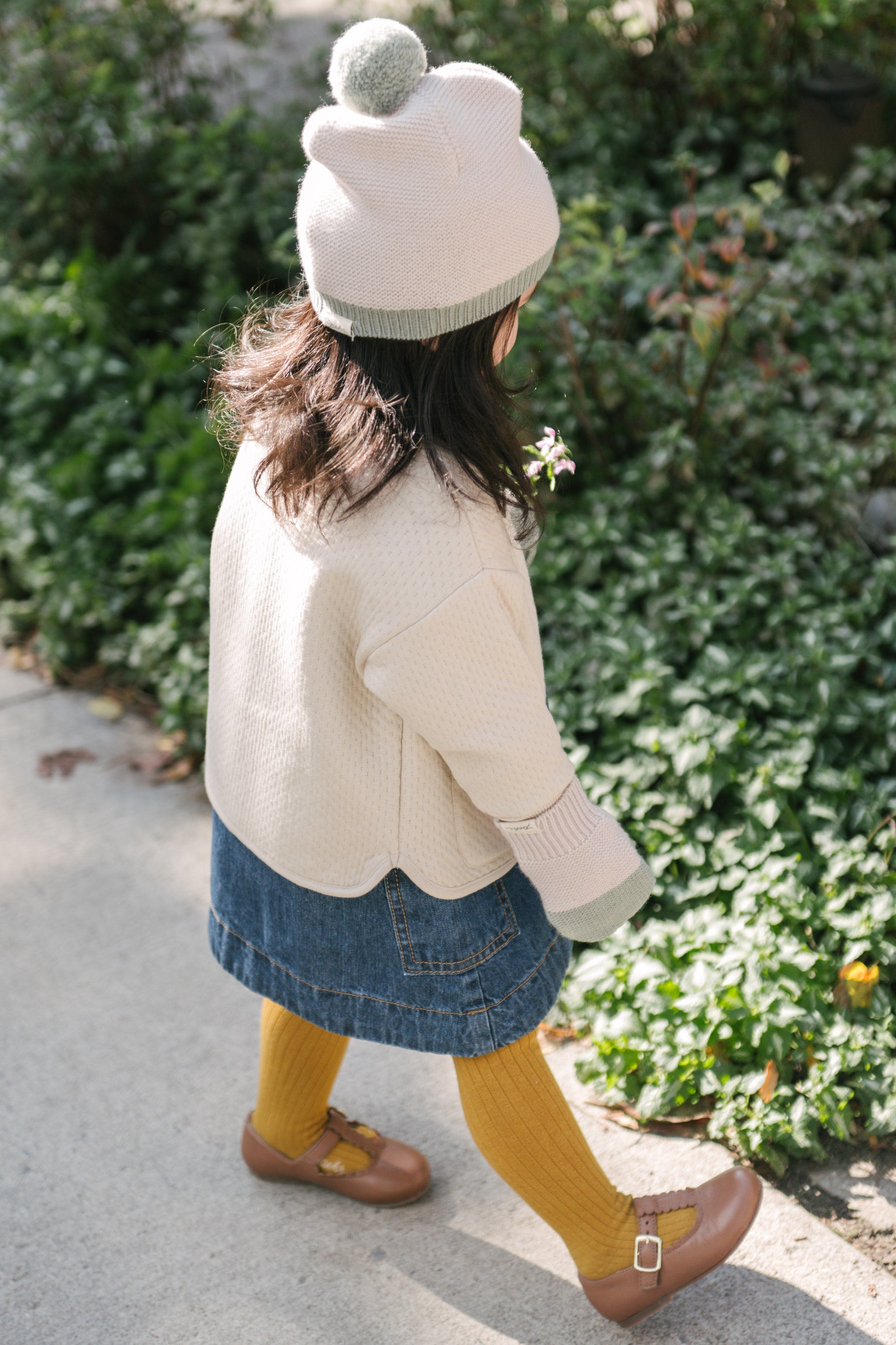 A cozy staple for little movers. Our Baby & Toddler Ribbed Tights are made from soft, ribbed organic cotton with a touch of stretch for comfort and durability. Designed with bottom grips to help keep early walkers grounded, and a snug, stay-put waistband for easy wear. We’ve even added size markers at the waistband to help keep their wardrobe sorted. ‘Pehr’ with any of our Dresses for an effortlessly sweet look.