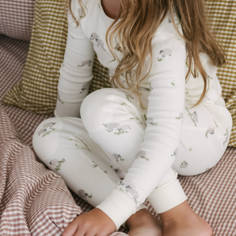 Made for sweet dreams and everyday snuggles! Our Ribbed Pajama is crafted from GOTS certified ribbed organic cotton that’s soft, breathable, and gentle on sensitive skin. The ribbed texture offers natural stretch and flexibility, so your toddler can move, grow, and snooze with ease. Thoughtful details like foldable “grow with me” cuffs at the wrists and ankles and reinforced knee patches add comfort and durability for every adventure.