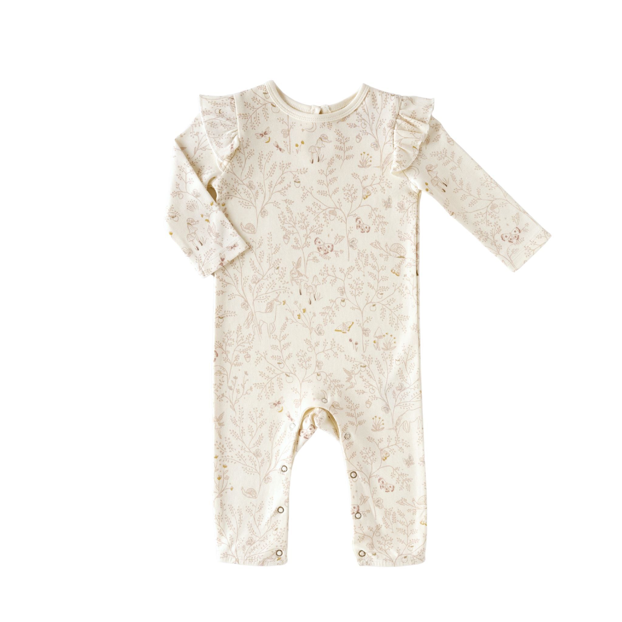 Made for sunny days and sweet moments. Our Ruffle Romper is crafted from GOTS-certified 100% organic cotton for a super soft, breathable feel. With adorable prints, delicate shoulder ruffles, cuff sleeves, easy leg snaps, and back hey hole snaps it’s an everyday go-to for comfort, style, and quick changes. Pehr with our fisherman sandals & bucket hat to complete the look.