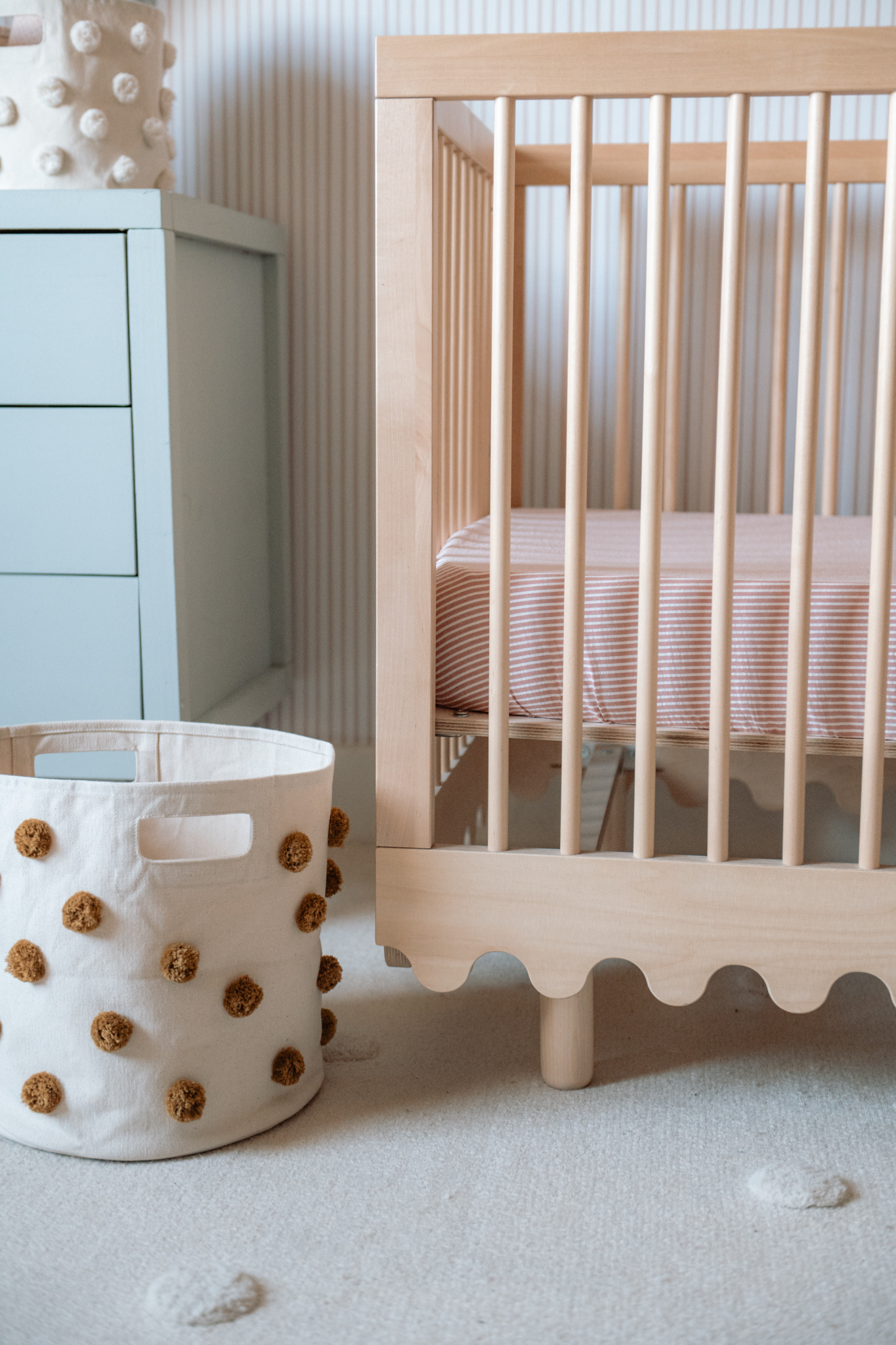 Lightweight, textured, and made for summer nights. Crafted from GOTS certified 100% organic cotton and screen printed using AZO-Free dyes, our Seersucker Crib Sheet is gentle on sensitive skin and stays soft wash after wash. The textured seersucker adds an airy feel while it's fully elasticized bottom makes for a snug, secure fit on standard crib mattresses up to 52" x 28" x 8". Pehr with our Blankets or Mobiles for a cozy, coordinated nursery look.
