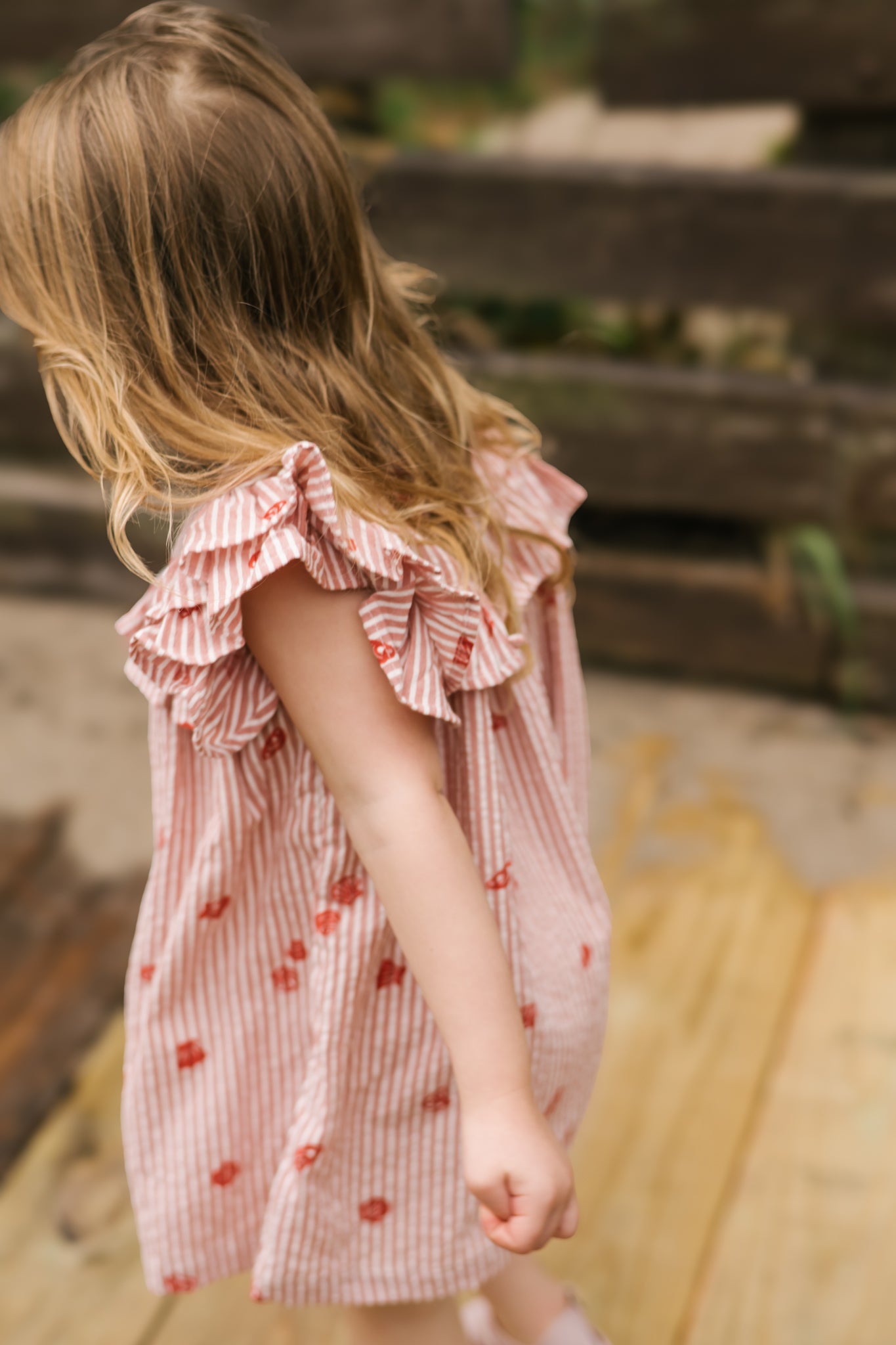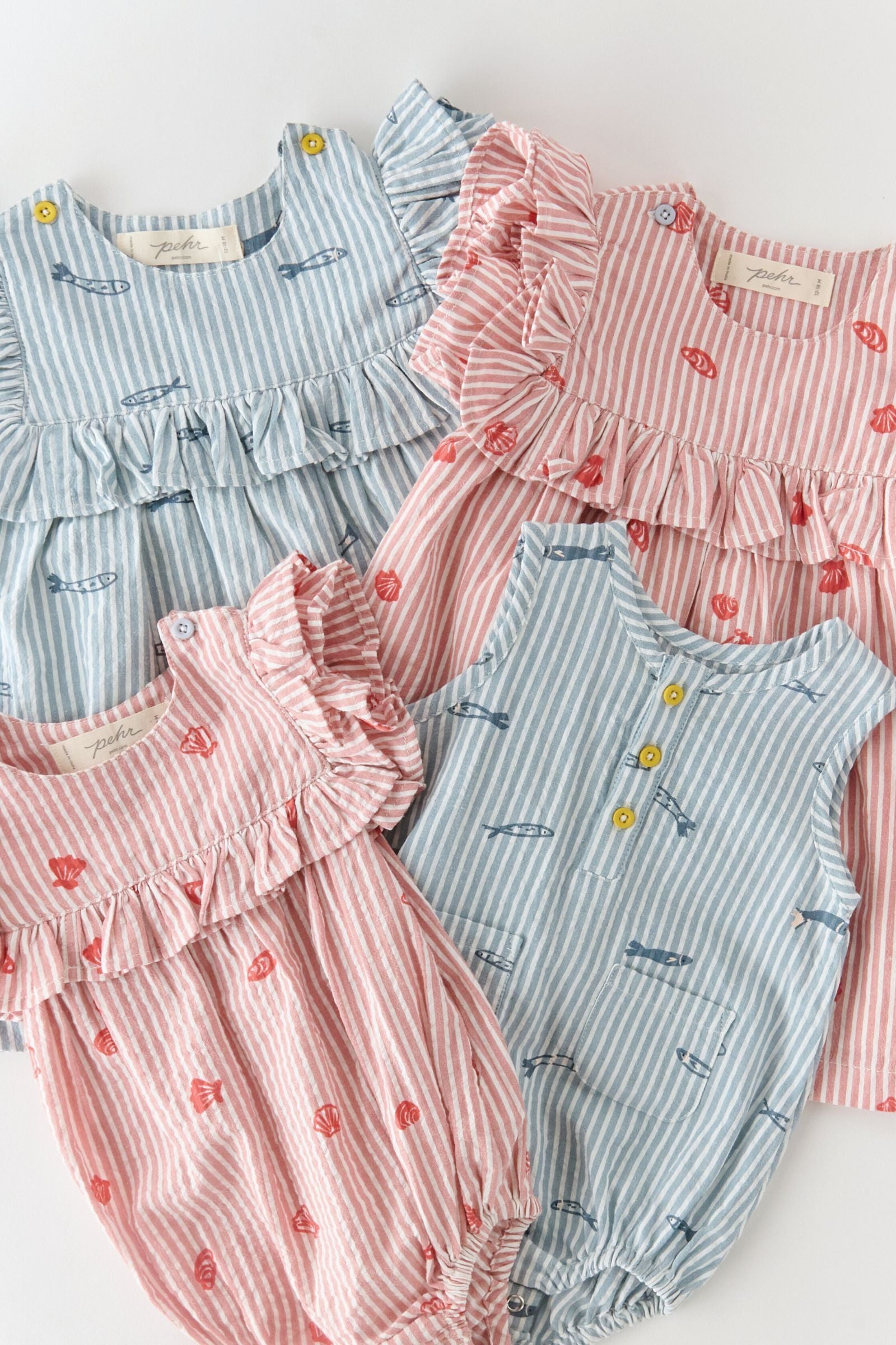 Inspired by classic nautical striped prints, this flutter-sleeve dress is finished with sweet ruffle details, a fully lined skirt for easy movement, and convenient shoulder button closures for effortless dressing. Thoughtfully designed for both style and practicality, it’s the perfect choice for summer celebrations, everyday play, and everything in between — effortlessly sweet, endlessly wearable.