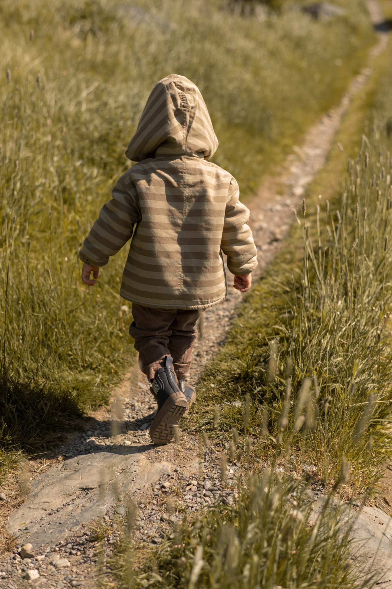 Keep your littles warm and ready for adventure in our Hooded Jacket. With a water-repellent shell and soft sherpa lining, it’s designed for cozy comfort on chilly days. Elasticized cuffs, flap pockets, and a front zipper with hidden snaps make it as practical as it is cute, while an interior name tag adds a thoughtful finishing touch. Pehr with our Park Splash Pants and Pathfinder boots for a rain safe look.